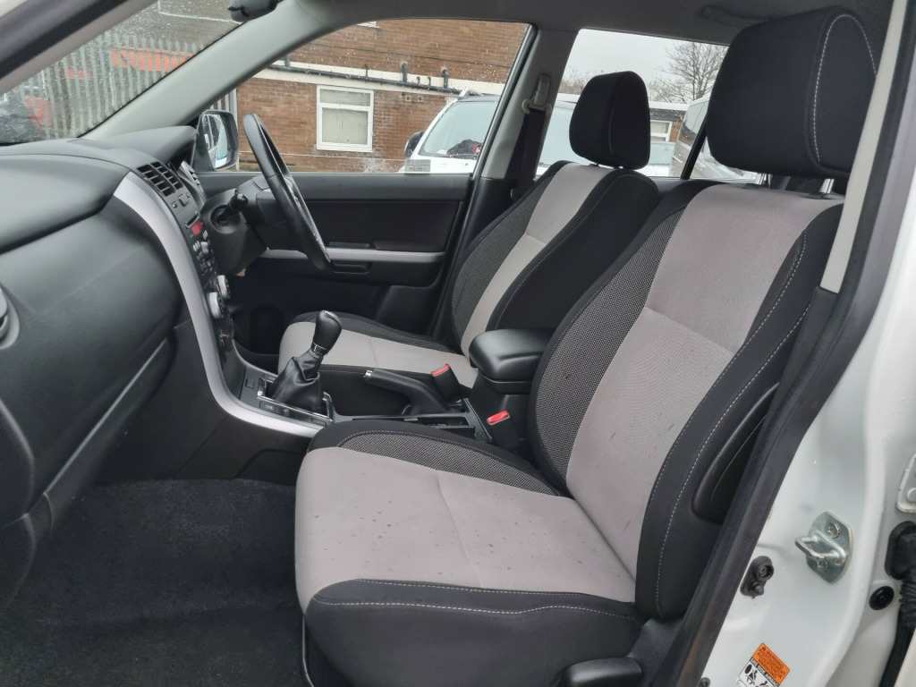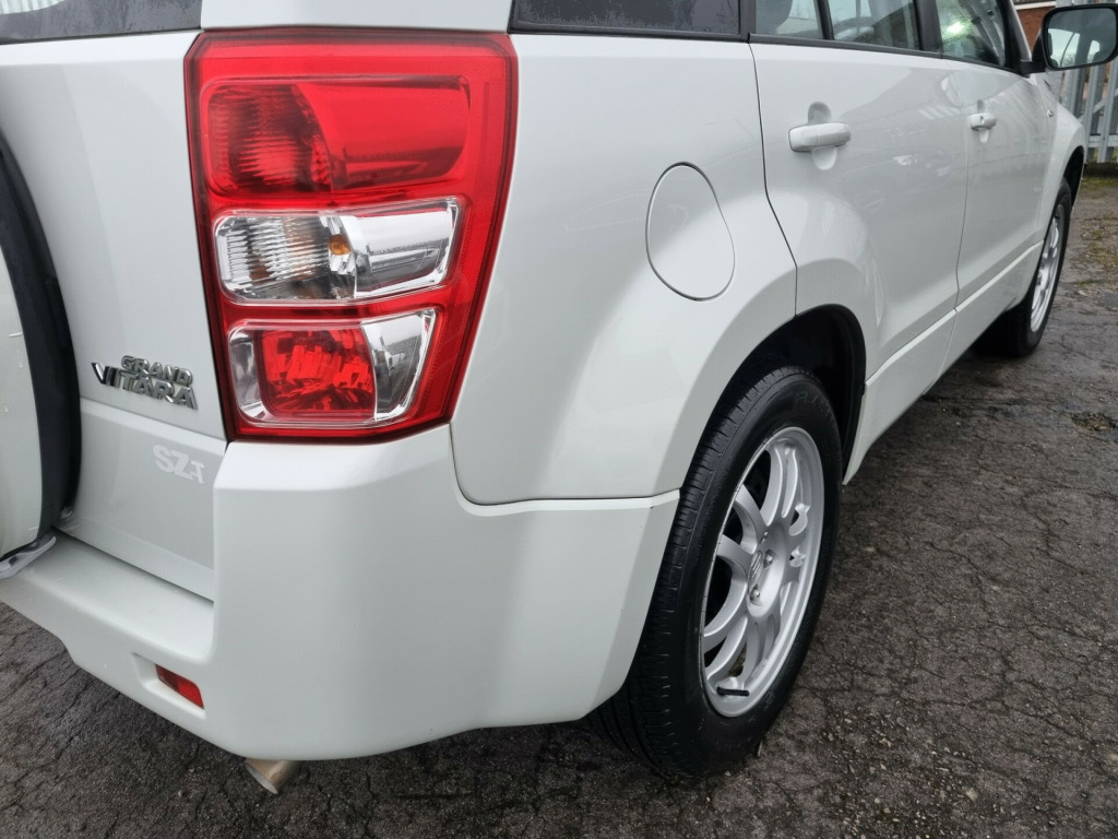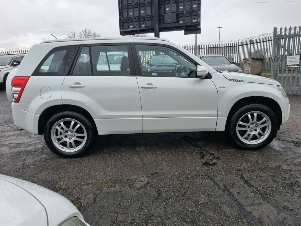 We Are Proud To Present This Stunning 2012 Suzuki Grand Vitara 1.9 DDIS SZ-T Presented In Pearl White With Complementing Black Cloth Interior. This Amazing Car Includes 18'' Alloy Wheels, 1 FORMEE KEEPER, SERVICE HISTORY COMPRISING 8 STAMPS, 2 KEYS, Automatic Daytime Running Lights, Cruise Control, Air Conditioning, CD Player, 5 Speed Manual Gearbox And Multifunction Leather Steering Wheel. Do Not Miss This Stunning Example Reserve This Vehicle Now For £100. FCA Approved Garage, TOP PRICE PAID ON PART EXCHANGE, BUY WITH CONFIDENCE. v accessory socket, 6 disc cd changer, luggage area accessory socket, mp3-wma compatible cd tuner, roof mounted antenna, speakers - x4 and tweeters x2, speed sensing volume control, 2x front and 2x rear cupholders, armrest, automatic air conditioning, centre console with storage, coat hooks x 2, dashboard centre speaker, driver seat height adjuster, foot protecting brake and clutch pedals, front assist grips x2, front map light with centre and rear cabin lights, front sun visors with vanity mirrors, lockable glovebox, luggage area convienience hooks x2, luggage area underfloor compartment, luggage compartment light, pollen filter, rear assist grips x2, rear seat with 60-40 split folding, reclining front and rear seats, remote fuel lid opener, seat height adjuster - drivers side, steering wheel - 3-spoke leather covered, steering wheel - tilt-adjustable, steering wheel mounted audio controls, storage pockets in front doors incorporating bottle holders, storage pockets in rear doors, ticket holder - on drivers sun visor, abs - anti-lock braking system, airbag - driver, airbag - front passenger, brake assist function, central door locking switch, child seat tether anchorages x 2, childproof rear door locks, curtain airbags, deadlocks, drivers seatbelt warning light and alarm, ebd - electronic brakeforce distribution, esp - electronic stability program, freewheeling key cylinders, isofix child seat anchorages, immobiliser, remote central door locking, side airbags, side impact protection beams, steering wheel - 3 spoke, visible vin, body coloured exterior mirrors and door handles, electric front windows with drivers side auto-down, electric rear windows, electrically adjustable and heated door mirrors, electrically adjustable and heated door mirrors with indicator light, flat tyre repair kit, folding exterior door mirrors, green tinted glass, roof rails, silver coloured hood side fins, two speed front wiper with intermittent single speed rear wiper, unique 18in alloy wheels, unique front grille, digital clock, door ajar warning light, fuel consumption and range display, lights-on and key-in reminder, low fuel warning light, outside temperature display, power steering, tachometer, front fog lights, hid projector headlights, headlight washers, high mounted brake light