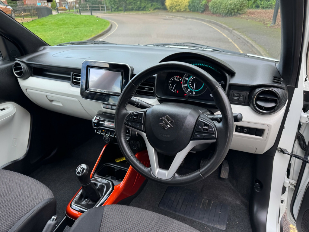 This 2017 Suzuki Ignis 1.2 Dualjet MHEV SZ5 Hatchback with just 30989 miles on the clock is a reliable and economical choice, running on Petrol Hybrid fuel and boasting a MOT that expires on 29/06/2026. With 4 seats and 5 doors, this vehicle is perfect for small families or city driving, and it is ULEZ compliant, making it ideal for urban areas. Including features like a 12V Accessory Socket, Bluetooth Integrated into Audio Unit, DAB Digital Radio, Front Speakers x2, and an MP3 Compatible CD Player, this car offers modern conveniences and entertainment options. With its Euro 6 (s/s) (90 ps) engine, this Suzuki Ignis is efficient and environmentally friendly, making it a great option for those looking for a practical and eco-conscious vehicle., v accessory socket, bluetooth integrated into audio unit, dab digital radio, front speakers x2, mp3 compatible cd player, navigation system, rear speakers x2, smartphone link audio - apple carplay and android auto, tweeters x2, usb connector, 16in alloy wheels, black coloured a and b pillars, body coloured exterior door handles, body coloured exterior door mirrors, door mirrors with built-in turn signal lamps, electric front windows, electric rear windows, electrically adjustable door mirrors, emergency flat tyre repair kit, front grille - black with chrome accent, locking wheel bolts, rear privacy glass, roof rails, wheel arch extensions, 2 x front cup holders, 2 x front door and 2 x rear door bottle holders, 3-spoke leather covered steering wheel, automatic air conditioning, centre and side a-c louver bezels - silver, centre-lower box, chrome interior door handles, cup holder - rear, driver seat height adjuster, drivers footrest, drivers side sunvisor with vanity mirror and ticket holder, front cabin light, front passenger side seatback pocket, front wiper with adjustable intermittent and washer, front and rear door interior trim colour - black and white, heater, luggage area cover, meter illumination, passengers side assist grips, passengers side sunvisor with vanity mirror and ticket holder, pollen filter, rear seat head restraint x2, rear seat slide and reclining function, rear seat with 50-50 split single-fold, remote fuel lid opener, steering wheel - tilt-adjustable, storage pockets in front doors, abs with ebd function, brake assist function, child seat tether anchorages x 2, childproof rear door locks, curtain airbags, deadlocks, driver and front passenger airbags, esp - electronic stability program, freewheeling key cylinders, front 3-point elr seatbelts with pretensioners - force limiters and height adjuster, front passenger airbag deactivation system, front and rear seatbelt reminder, hill hold control, isofix child seat anchorages x 2, immobiliser, keyless entry and start, pedal release mechanism, rear 3-point elr seatbelts, rear wiper with intermittent and washer, remote central door locking, side airbags - incorporated into front seats, side impact protection beams, visible vin, automatic headlamps, daytime running lights - led, front fog lights, guide me home light function, headlamp levelling switch, led high mount stop lamp, led projector headlamps, average speed indicator, cruise control with speed limiter, digital clock, door ajar warning light, driving range indicator, dual camera brake support, engine oil change reminder, fuel consumption gauge, gear shift indicator, lights-on and key-in reminder, outside temperature display, power steering, rear parking camera, tpms - tyre pressure monitoring system, tachometer