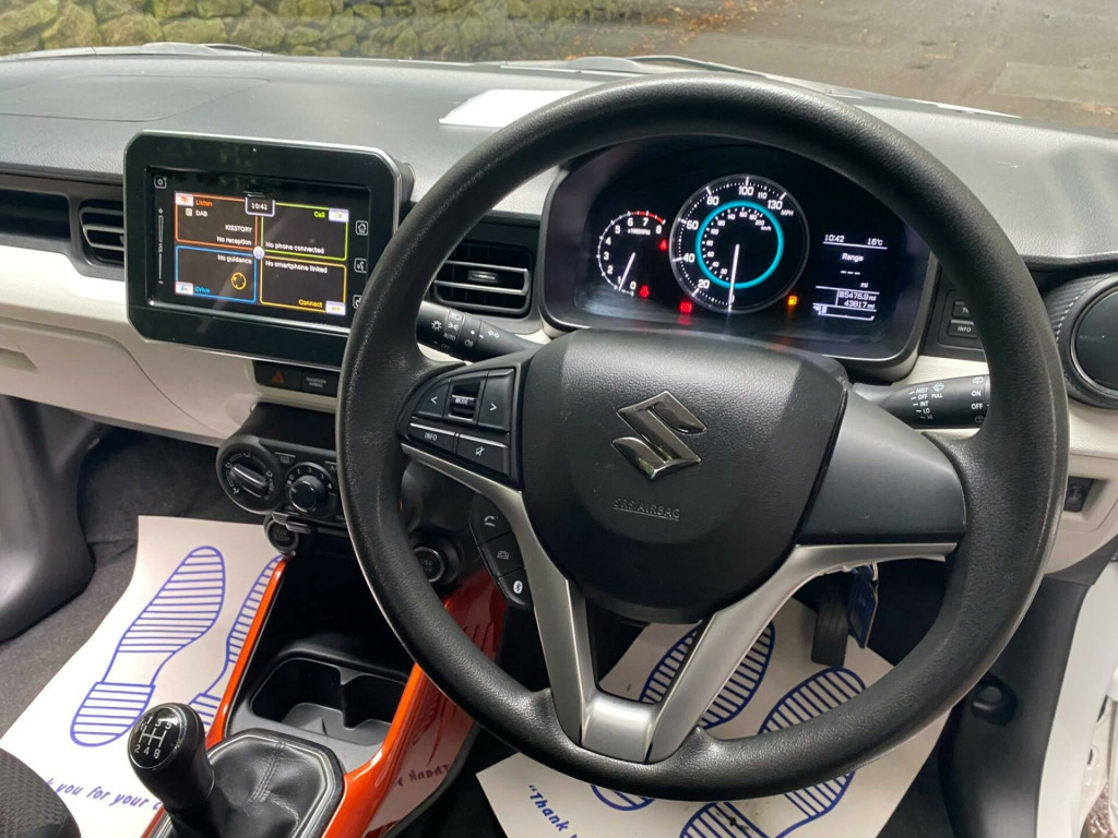 This is a Suzuki Ignis SZ-T, registered in 2018 and equipped with a 1.2L petrol engine. This car boasts several features designed to enhance your driving experience. Parking is made easier with the rear parking camera and parking assistance system. Stay connected on the go with Smartphone Link Audio, offering Apple CarPlay and Android Auto integration.Comfort is ensured with manual air conditioning, while the integrated Bluetooth audio unit allows for hands-free calls and wireless music streaming. The automatic headlamps provide added convenience, automatically activating as needed. With a clear vehicle history check, you can drive away with peace of mind. The fuel economy of 53 mpg means fewer trips to the petrol station, saving you money and time compared to similar vehicles.. 16in Alloy Wheels, 2 x Front Door and 2 x Rear Door Bottle Holders, Automatic Headlamps, Black Coloured A and B Pillars, Bluetooth Integrated into Audio Unit, Body Coloured Exterior Door Handles, Centre and Side A-C Louver Bezels - Silver, Child Seat Tether Anchorages x 2, Chrome Interior Door Handles, DAB Digital Radio, Daytime Running Lights, Drivers Footrest, Drivers Side Sunvisor with Vanity Mirror and Ticket Holder, ESP - Electronic Stability Program, Front 3-Point ELR Seatbelts with Pretensioners - Force Limiters and Height Adjuster, Front Cabin Light, Front Passenger Airbag Deactivation System, Front Speakers x2, Front Wiper with Adjustable Intermittent and Washer, Front and Rear Door Interior Trim Colour - Black and White, Front and Rear Seatbelt Reminder, Halogen Multi-Reflector Headlights, Headlamp Levelling Switch, Heater, Manual Air Conditioning, Navigation System, Pedal Release Mechanism, Pollen Filter, Rear 3-Point ELR Seatbelts, Rear Parking Camera, Rear Privacy Glass, Rear Seat Head Restraint x2, Rear Seat with 50-50 Split Single-Fold, Rear Speakers x2, Rear Wiper with Intermittent and Washer, Remote Fuel Lid Opener, Roof Rails, Side Impact Protection Beams, Smartphone Link Audio - Apple CarPlay and Android Auto, TPMS - Tyre Pressure Monitoring System, USB Connector, Wheel Arch Extensions.