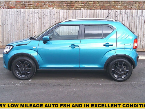 This 2020 Suzuki Ignis SZ T AUTOMATIC is finished in Neon Blue Metallic with contrast black cloth interior and has an exceptionally low mileage of just 13,500 miles. This Euro 6 compliant 1.2 litre petrol model offers a blend of practicality and modern convenience. It has a good level of specification including Air Conditioning, Rear Park Camera, Apple Carplay with Android Auto, Bluetooth and DAB Radio. It has full service history and has been both well looked after and maintained. HPI checked clear, it has a service/handbook pack and two keys. Our advertised price includes a further service, 6 months warranty cover and a complimentary 12 month AA cover for complete peace of mind. We are happy to take whatever part exchange we have and we guarantee to offer the best price possible for your car. Thinking of Car finance? We work with leading companies to source the best deal for you so please do ask us for a quotation to see just how affordable this car could be. The car has just arrived at the Showroom and is available to view and test drive. We have flexible opening times, so please do give us a call on 01653 699477 so that we can organise a convenient time for you. Full photos will be uploaded shortly. Neon Blue Metallic, Fabric - Black, 16in Alloy Wheels, Smartphone Link Audio - Apple CarPlay an, Rear Parking Camera, Manual Air Conditioning, Automatic Headlamps, Bluetooth Integrated into Audio Unit, DAB Digital Radio, Hill Hold Control, Rear Privacy Glass, 12V Accessory Socket, 2 x Front Cup Holders, 2 x Front Door and 2 x Rear Door Bottle , ABS with EBD Function, Average Speed Indicator, Black Coloured A and B Pillars, Body Coloured Exterior Door Handles, Body Coloured Exterior Door Mirrors, Brake Assist Function, Centre and Side A-C Louver Bezels - Silv, Centre-Lower Box, Child Seat Tether Anchorages x 2, Childproof Rear Door Locks, Chrome Interior Door Handles, Cup Holder - Rear, Curta