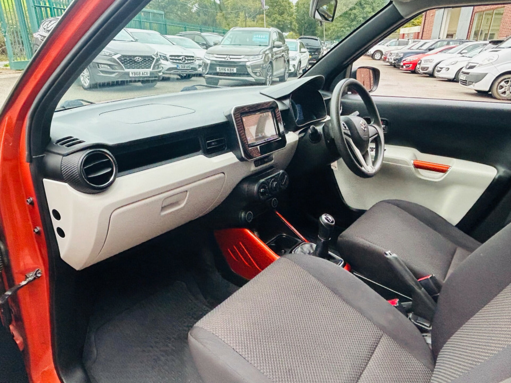 2017 Ignis 1.2 Dualjet SZ-T Hatchback 5dr Petrol Manual Euro 6 (90 ps)- on 74,697 miles with service history- 12 months' MOT on sale- low tax max model- Finance Available- Extended Warranties Available- Part Exchange Welcome , v accessory socket, bluetooth integrated into audio unit, dab digital radio, front speakers x2, mp3 compatible cd player, navigation system, rear speakers x2, smartphone link audio - apple carplay and android auto, usb connector, 16in alloy wheels, black coloured a and b pillars, body coloured exterior door handles, body coloured exterior door mirrors, electric front windows, electrically adjustable door mirrors, emergency flat tyre repair kit, front grille - black, locking wheel bolts, rear privacy glass, roof rails, wheel arch extensions, 2 x front cup holders, 2 x front door and 2 x rear door bottle holders, centre and side a-c louver bezels - silver, centre-lower box, chrome interior door handles, cup holder - rear, drivers footrest, drivers side sunvisor with vanity mirror and ticket holder, front cabin light, front wiper with adjustable intermittent and washer, front and rear door interior trim colour - black and white, heater, luggage area cover, manual air conditioning, passengers side assist grips, pollen filter, rear seat head restraint x2, rear seat slide and reclining function, rear seat with 50-50 split single-fold, remote fuel lid opener, steering wheel - tilt-adjustable, storage pockets in front doors, abs with ebd function, brake assist function, child seat tether anchorages x 2, childproof rear door locks, curtain airbags, deadlocks, driver and front passenger airbags, esp - electronic stability program, freewheeling key cylinders, front 3-point elr seatbelts with pretensioners - force limiters and height adjuster, front passenger airbag deactivation system, front and rear seatbelt reminder, isofix child seat anchorages x 2, immobiliser, pedal release mechanism, rear 3-point elr seatbelts, rear wiper with intermittent and washer, remote central door locking, side airbags - incorporated into front seats, side impact protection beams, visible vin, automatic headlamps, daytime running lights, guide me home light function, halogen multi-reflector headlights, headlamp levelling switch, led high mount stop lamp, average speed indicator, digital clock, door ajar warning light, driving range indicator, engine oil change reminder, fuel consumption gauge, gear shift indicator, lights-on and key-in reminder, outside temperature display, power steering, rear parking camera, tpms - tyre pressure monitoring system, tachometer
