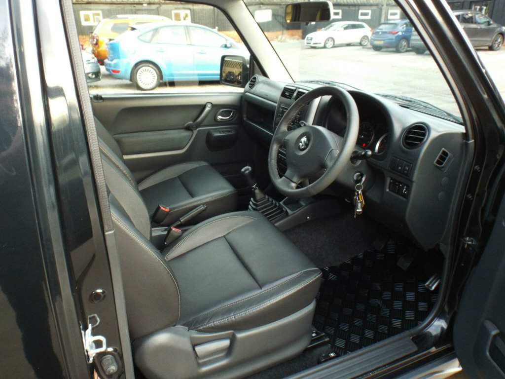 **NATIONWIDE DELIVERY AVAILABLE**This is a very clean and tidy 2012/62 Suzuki Jimny 1.3 SZ4 which comes with a great service history (Just serviced too) a long MOT until 19/11/2026 and a great spec. Finished in Black over Silver the paintwork is excellent and the vehicle has a great shine to it from all over. The full black leather interior is also in excellent condition with no adverse wear at all. Great spec: E/Windows, E/Mirrors, Remote C/L (2xKeys), Unmarked alloy wheels, Great tyres all round, Front and rear fog lights, Heated rear screen, Full black leather interior, AM/FM/CD Player, Aux Input, Air conditioning, Hi/Lo range gearbox with Diff lock, ABS/PAS/DSC, Fully fitted mats plus loads more. This is a really lovely example which has clearly had an easy life. Last 2 owners in the same family. We offer excellent finance rates, accept credit/debit cards and welcome part exchange too..., r bag driver, air bag passenger, air-conditioning, alloy wheels (15in), anti-lock brakes, central door locking, centre console, clock, cup holder, electric windows (front), extra storage, front fog lights, head restraints, immobiliser, in car entertainment (radio/cd), metallic paint, mirrors external (electric heated/folding), power socket, power-assisted steering, roof rails, seat belt pre-tensioners, side protection mouldings, speakers, steering wheel leather, sun visor, upholstery cloth