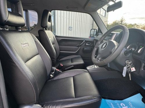 DRIVE HOME IN THIS SUPER FUNKY AND DESIGN CLASSIC 2011-61 SUZUKI JIMNY 1.3 SZ4 3 DOOR AUTOMATIC 4X4 FINISHED IN BLUISH BLACK OVER SILVER AND TRIMMED WITH BLACK LEATHER SEATING. LOW MILEAGE ONLY 48K MILES WITH A FULL SERVICE HISTORY INC 13XSERVICES AND A SUPERB COMBINATION OF STYLE & PRACTICALITY. ALL THE USUSAL JIMNY REFINEMENTS INC 15"ALLOY WHEELS, REAR PARKING SENSORS, AIR CON, SPARE WHEEL, TOW BAR, CD PLAYER, ROOF BARS, ELECTRIC WINDOWS AND MIRRORS. Air Bag Driver, Air Bag Passenger, Air-Conditioning, Alloy Wheels (15in), Anti-Lock Brakes, Central Door Locking, Centre Console, Clock, Cup Holder, Electric Windows (Front), Extra Storage, Front Fog Lights, Head Restraints, Immobiliser, In Car Entertainment (Radio/CD), Metallic Paint, Mirrors External (Electric Heated/Foldin, Power Socket, Power-Assisted Steering, Roof Rails, Seat Belt Pre-Tensioners, Side Protection Mouldings, Speakers, Steering Wheel Leather, Sun Visor, Upholstery Cloth