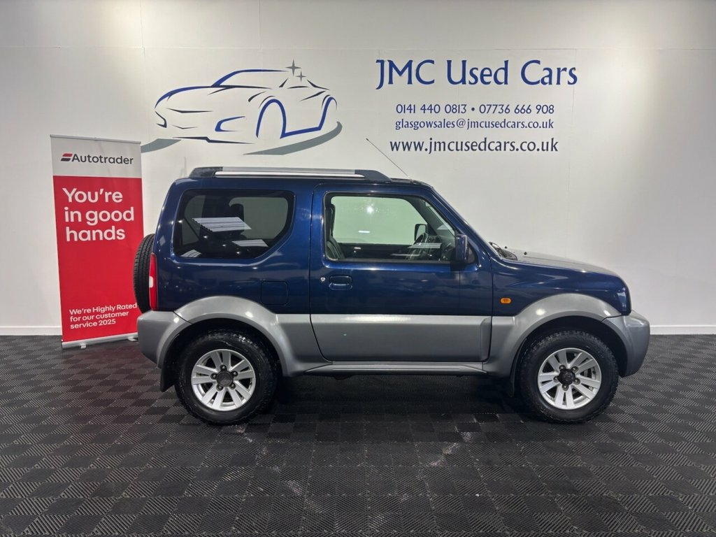 The Suzuki Jimny 1.3 SZ4 SUV 3dr Petrol Manual is a characterful, rugged little 4×4 that's surprisingly capable off-road thanks to its lightweight design, strong 4WD system and good ground clearance — perfect for tackling rough tracks or slippery conditions where many soft-road SUVs struggle. On-road it's more old-school and basic, with a modest 1.3 litre engine, firm ride and simple interior, but its compact size makes it easy to park, and it's built tough with a loyal following among fans of genuine off-road fun. Overall, it's a unique, dependable and fun little SUV if you value real 4×4 ability and personality over refinement. Award-Winning Family Business | Premium Customer Service & Aftercare Located just off Junction 24 of the M8 in Glasgow, we offer an impressive range of quality used cars, all displayed in our indoor showroom. Each vehicle is meticulously prepared to meet our high standards, ensuring you're driving away with complete confidence. We welcome part exchanges and offer tailored finance and warranty packages to suit every budget. Need help choosing the right car? Our team is here to provide expert advice and support. Can't make it in person? No problem! We offer live video walkarounds of our cars upon request, and you can complete all finance agreements securely online. For more details or to arrange a viewing, contact Martin today. Nocturne Blue Pearl Metallic, Part Leather, Adjustable Steering Column/Wheel, Air Bag Driver, Air Bag Passenger, Air-Conditioning, Alloy Wheels (15in), Anti-Lock Brakes, Armrest, Ashtray/Lighter, Body Coloured Bumpers, Central Door Locking, Clock, Cup Holder, Electric Windows (Front), Front Fog Lights, Head Restraints, Heated Rear Screen, Immobiliser, In Car Entertainment (Radio/CD), Metallic Paint, Mirrors External, Power-Assisted Steering, Rev Counter, Roof Rails, Side Protection Mouldings, Speakers, Steering Wheel Leather, Sun Visor, Third Brake Light, Tinted Glass (Rear Windows), Towing Equipment (Preparation), Trip Computer, Upholstery Cloth, Upholstery Cloth/Leather, Upholstery Leather