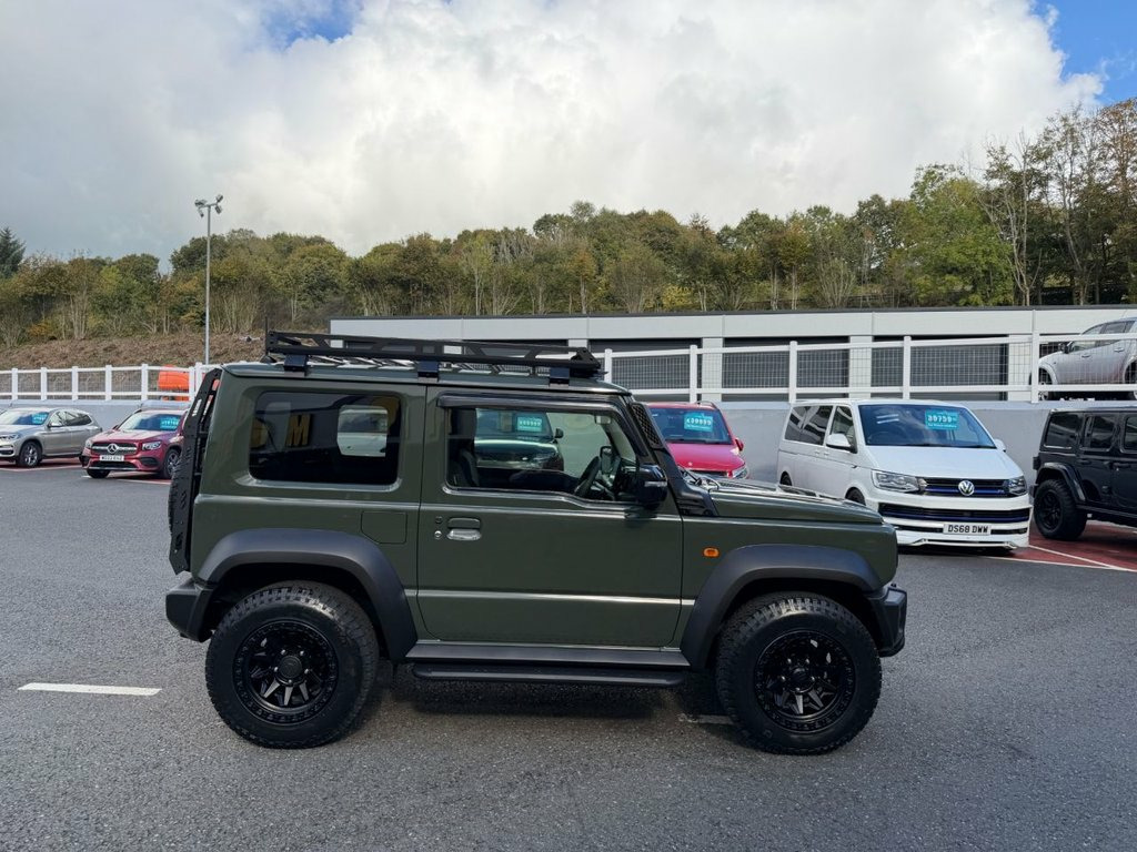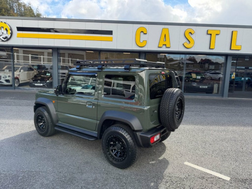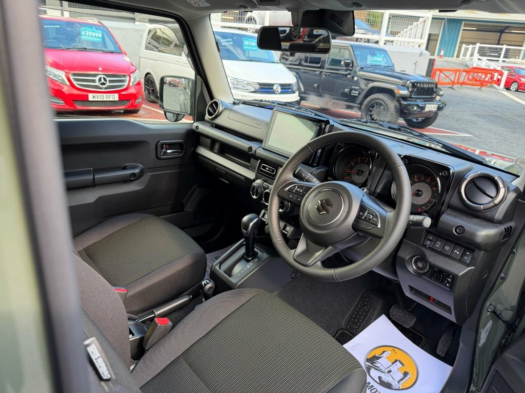 Jimny Sierra JC 1.5 Auto 4WD. Very high specification 'Stage One' 4 seater Automatic with delivery mileage physically in stock at Castle Motors. Army Green with Black trim, SZ5 equivalent with our Stage ONE Package, FUEL wheels with General Grabber AT Tyres, Snorkel, rear mounted roof ladder, Adventure roof rack with LED Lighting, side Nerf bars, plus factory spec of Climate control AC, Large multimedia centre with smartphone link, Google Maps, Reversing camera, Google play, Heated seats, Lane and collision assist, Cruise control, Anthracite alloy wheels with AT tyres, Sun protection glass, Folding rear seats, Selectable 2/4WD with Hi/Low ratios and Hill descent plus more. Imported new from Japan (manufactured 2024 & first UK registered October 2025 with delivery miles) as the 4 seater is no longer sold in the UK, this model is ready to go