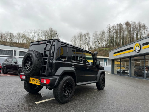 2025 Delivery mileage Suzuki Jimny 1.5 Automatic 5 Door 4x4. Delivery mileage new Jimny 5-Door 4 Seater with our Stage One Adventure Package finished in metallic Black with matching trim, High specification with FUEL Black wheels with General Grabber AT tyres, roof rack with LED Lighting, rear ladder, Touchscreen multimedia with android Auto, Reversing camera, Navigation and Apps, heated seats, Climate control, Cruise control, Park assist, Collision assist, Hill Descent, selectable 2/4WD & more. Delivery mileage on '25' plate, Japanese import NOMAD 5-Door as is not officially sold In the UK