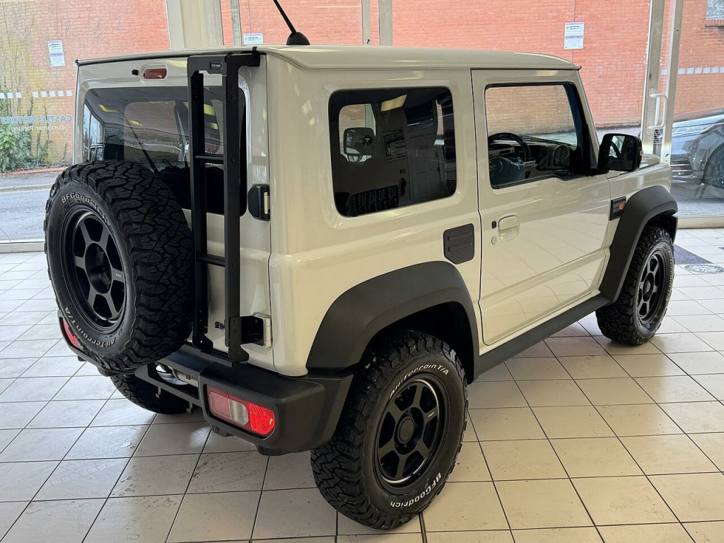 What a great fun car this Jimny is. It looks superb in a choice of Superior Pearlescent White or Medium Grey with Upgraded 16 inch Alloys & Tyres , Retro Front Grille, Side Indicator Trims & Fuel Lid Cover plus Rear Defogger Guards and Rear Door Ladder and with lots of great standard features including Reverse Camera , Apple Car Play / Android Auto , Cruise Control , Heated Front Seats , Keyless Entry and so much more. It comes with delivery mileage the clock and for peace of mind a 3 Years Comprehensive RAC Warranty & Breakdown Cover. Complete with two mats , mats and handbooks.. Android Auto, APPLE CAR PLAY, Blue Tooth Connectivity, Steering Wheel Audio Control, Keyless Entry & Start Up, Automatic Headlamps, Cruise Control, Headlamp Washers, High & Low Range 4x4, Lane Departure Warning, Main Beam Assit, Power Folding Door Mirrors, Reverse Camera, Traction Control, 15 Inch Alloys, Privacy Glass, Daytime Running Lights, Front & Rear Foglamps, 12V Accessory Socket, Carpet Ovemats, Electric Front Windows, Genuine Leather Steering Wheel, Heated Front Seats, Full Size Spare Wheel.