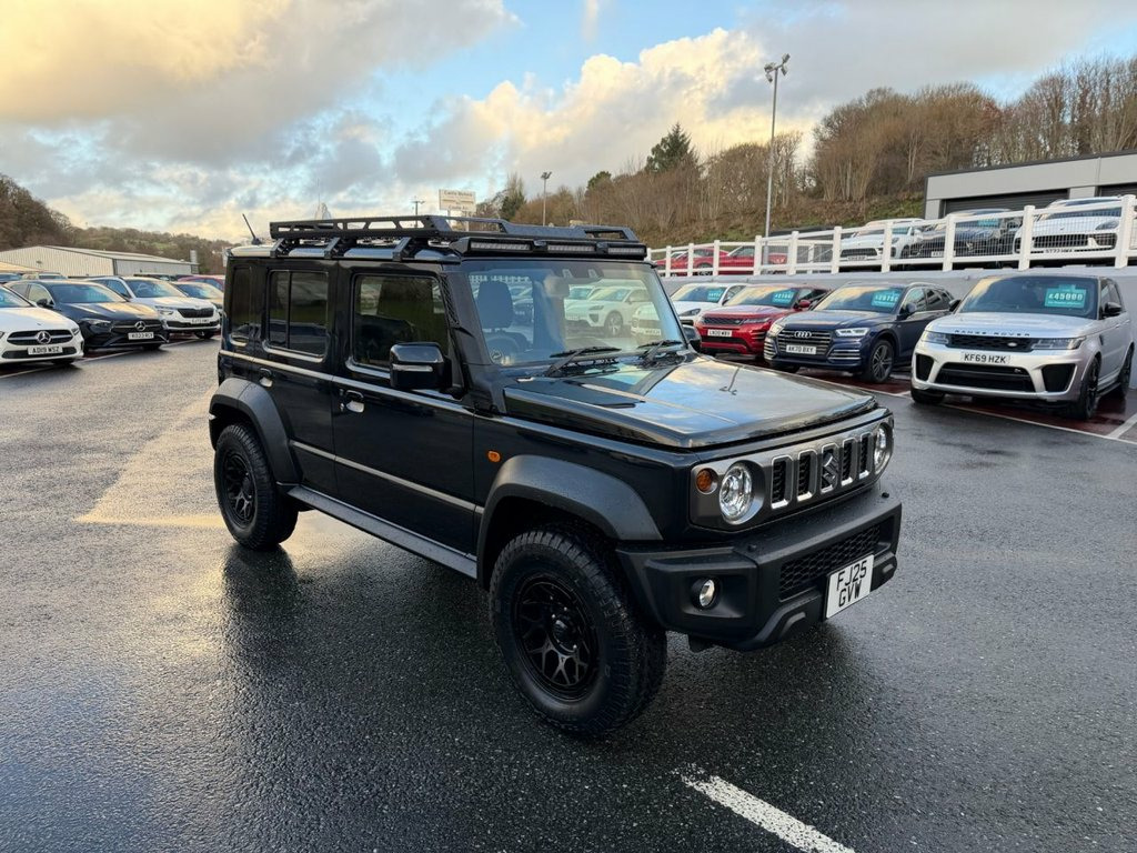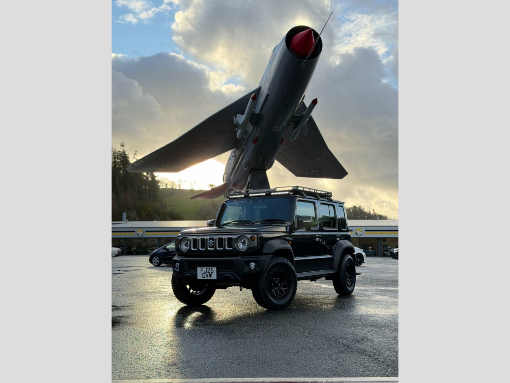 2025 Delivery mileage Suzuki Jimny Nomad 1.5 Automatic 5 Door 4x4. Very rare 5- door with our Stage One Adventure Package finished in metallic Black with matching trim, High specification with M-01 Satin Black wheels with General Grabber AT tyres, roof POD LED lighting, rear ladder, Touchscreen multimedia with android Auto, Reversing camera, Navigation and Apps, heated seats, Climate control, Cruise control, Park assist, Collision assist, Hill Descent, selectable 2/4WD & more. Physically here with delivery mileage on '25' plate, Japanese import as the 5 door is not officially sold In the UK
