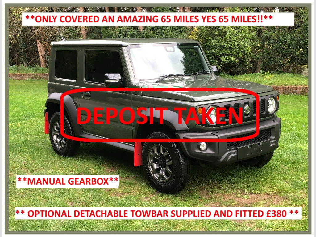 **DELIVERY AVAILABLE PLEASE ASK**2023 (23 plate) Jungle green Suzuki Jimny SZ5 4 seater with a manual gearbox, Only covered 65 miles yes 65 miles !! and a japanese auction grade of 5A !!, The Japanese Jimny is cheaper to road tax compared to the uk lcv version... uk lcv £345, jap import £220 and it's also not subject to the lower speed limits like the uk lcv commercial version, This SZ5 version also higher spec compared to the uk lcv version... Keyless entry and push button start (2 remotes), Front collision avoidance system, Lane departure warning system, Heated electric folding mirrors with built in indicators, Heated seats, Cruise control, Hill descent, Air conditioning, LED headlights with washers, The red mud flaps can be changed to black if preferred, Optional detachable towbar supplied and fitted for £380.