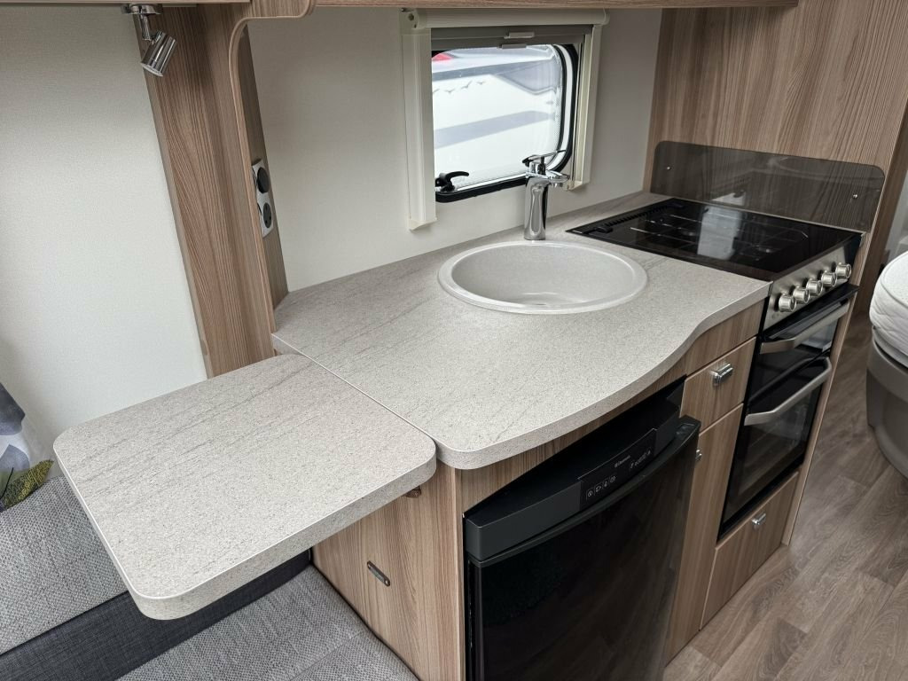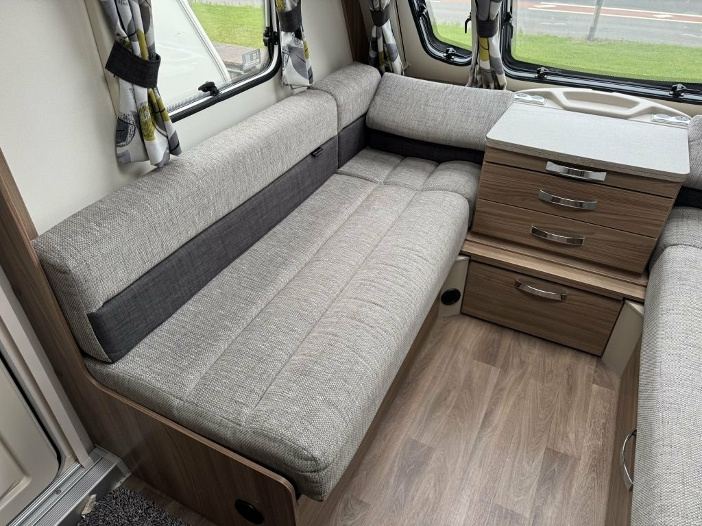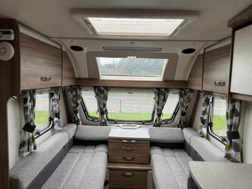 2017 Swift Sprite Major 4 SB Ben Nevis Cruach dealer special model. This caravan is a 4 berth touring caravan with a transverse fixed island bed with and end washroom and separate shower and a mid kitchen, front lounge with double bed conversion. This caravan has just been serviced by ourselves and is ready to tow away. It remains in great condition throughout and is great for couples and families alike wanting to tour practically and in comfort. The specification includes: Step on hitch cover ATC trailer control External gas BBQ point External 230v socket Front and rear external access lockers Thule bike rack prep 1 piece entrance door Front panoramic window Front chest of drawers with occasional table Radio,CD,AUX,USB Extending worktop Circualr sink with mixer tap 3 gas burner hob Oven and separate grill Dometic black fronted digital fridge with freezer Microwave in dedicated housing Sideboard with TV point Fixed island bed Corner vanity shelving with TV point Wardrobes and cupboards to either side of bed and storage lockers above Solid sliding washroom door Thetford electric flush toilet Washbasin with storage pedestal and vanity mirror Square fully lined shower cubicle Truma heating and hot water system Full set of loose fit drop in carpets This caravan also comes with the following FREE accessories: Motor mover Aqua roll Wastemaster Leg winder Entrance step Power cable Toilet fluid PLUS 1 night's complimentary stay at The Horn's Dam caravan park and fishing