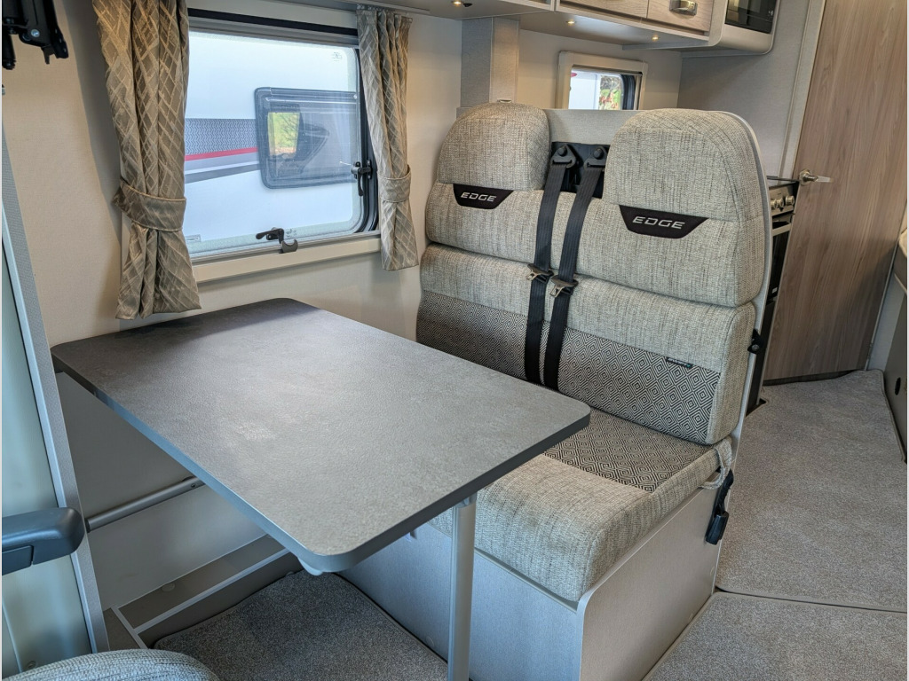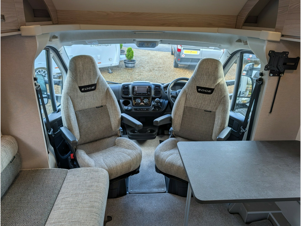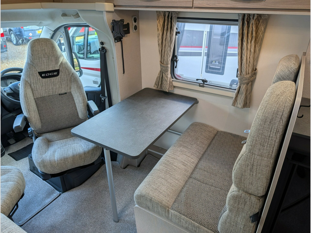 This 2023 Swift Edge 464 is a 4-berth / 4 belt motorhome featuring a popular fixed French bed layout, built on a Fiat Ducato chassis with a 2.2L 140bhp engine.The rear bedroom (nearside) has a permanent fixed double ''French'' bed which lifts on gas struts to reveal a large storage area accessible from both inside and outside.There is a rear washroom (offside) located next to the bed, containing a cassette toilet, washbasin, and integrated shower.The central kitchen is equipped with a 3-burner gas hob plus one electric hotplate, an oven with grill, a microwave, and a fridge/freezer.And the front lounge & dinette area includes a side-facing seat and a dinette with two additional travel seat-belts. Both cab seats swivel to join the dining area.The front lounge converts into a second double bed.GROSS VEHICLE WEIGHT: 3500kg.This vehicle can be viewed at our West Sussex branch located in Ashington on the A24. To book a viewing please call our sales team on 01903 893666For your complete peace of mind all our motorhomes are finance and HPI checked, have a full service and PDI and include up to 12 months in-house warranty.We also give you a dedicated one-to-one handover to show you how it all works and a full tank of fuel.Sussex Caravan and Motorhome Centre is a family owned, multi-award winning dealership including Practical Caravan Gold Supplying Dealer and FEEFO Platinum Trusted Service Award. Proudly celebrating over 35 years in business. volt charger, 230v socket, 4 belts, 4 berth, awning light, cab air-conditioning, cassette blinds, cruise control, curtains, door flyscreen, driver airbag, dual fuel hob, fixed bed, fridge with freezer box, grill, high level brake light, loose fit carpets, microwave, oven, passenger swivel seats, reversing sensors, shower, toilet, truma combi heating system, tv aerial, usb socket