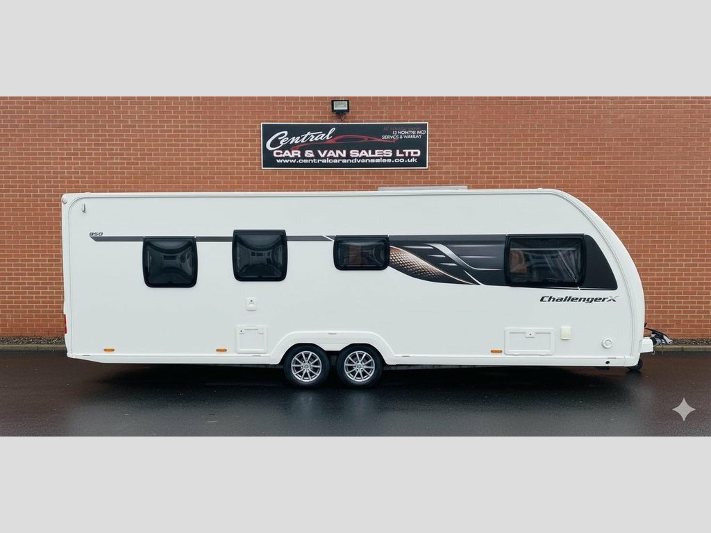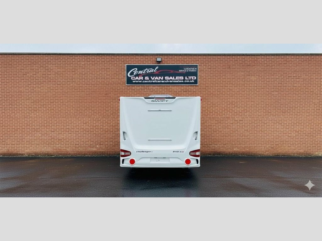 Experience the pinnacle of touring luxury with this stunning 8ft wide 2021 Swift Challenger X 850 Designed for those who refuse to compromise on space. This extra wide model offers a level of comfort and at-home feel that standard caravans simply cannot match. The Challenger has a dedicated fixed Island bed at the rear in the end bedroom, separate centralized bathroom with separate shower and toilet and a spacious front lounge that also converts to a bedroom. The X - Designation means an 8ft wide body providing a massive increase in floor space and a much larger front lounge. The Maser Suite features a luxurious Transverse island bed with a high quality Duvalay mattress allowing for a restful nights sleep with easy access from both sides. Full width washroom ,a spacious central pass through washroom acting as a ensuite featuring a separate walk in shower cubicle, vanity sink and electric flush toilet. Gourmet kitchen. Fully equipped with a tall Dometic dual hinged fridge freezer Oven grill 3 - burner gas hob with electric hotplate and integrated microwave. Smart technology fitted with the Swift Command control system allowing you to manage your lights, heating and water via your smartphone! Year round comfort aide wet central heating and grade 3 insulation keep you cozy in the winter and cool in the summer, Air Conditioning has been professionally installed Exterior modern aerodynamic design with Edge alloy wheels heavy duty corner steadies and an extra BBQ point. At Central 12v Power, Air Conditioning, Alarm, Alloy Wheels, Alloys, Awning, Awning Light, Battery Charger, Blinds, Blown Air System, CD Player, Central Heating, CO2 Dectectors, Cocktail Cabinet, Dometic Fridge Freezer, Door Flyscreen, Double Glazing, Duvalay Mattress, Edge Alloy Wheels, Electric Heater, End Bedroom, Ensuite, Exterior Gas Bottle Locker, External 240v, External Lighting and Safety, Fire Extinguisher, Fixed Bed, Fixed Island Bed, Freezer, Fridge, Fridge Freezer, Fridge/Freezer, Gas BBQ Point, Gourmet Kitchen, Grade 3 Insullation, Grill, Heater, Heavy Duty Corner Steadies, Hob, Hot And Cold Shower Unit, Insulated Panels, Laminated Floor Construction, Leisure Battery, Lined Curtains, Mains