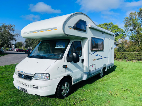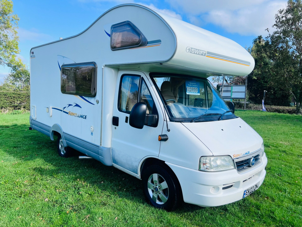 For sale is a 2003 Swift Sundance 590RS motorhome with just 44000 miles on the clock. Powered by a reliable diesel engine, this 5-berth vehicle comes with a valid MOT until 01/10/2026. Can be driven on car licence with a gross weight of 3300kg, this motorhome is spacious and comfortable for all your travel needs. It also comes equipped with alloy wheels, rear belts, solar panel, and a reversing camera, providing convenience and safety on the road. The vehicle also comes with a full service history, ensuring its reliability and excellent condition. Don't miss out on the opportunity to own this well-maintained motorhome for all your future adventures. Supplied with a New habitation check and a Comprehensive warranty. Part exchange welcome. Car caravan camper. No finance open everyday. Located BS246se ,