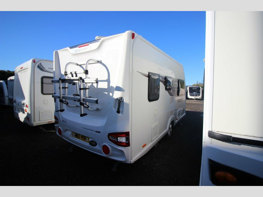 The Swift Ace Ambassador is a two-berth model that features a very large yet cosy front lounge with double bench seats and a chest of drawers in between. On an evening this area can be used as two single beds or converts into a double bed. The Ambassador has a well-equipped centre kitchen which benefits from a great deal of worktop and storage space plus plenty of modern features and fittings Including 3 gas hob, oven / grille, high level microwave and fridge freezer. The end bathroom includes cassette toilet, shower and sink with vanity unit and large mirror. Truma digital heating and motor movers. This caravan is high quality with a contemporary interior. Clear Cris check, 3 months warranty, Fully serviced and ready for collection, Home delivery available, Finance available up to a 10 year term, Part exchange welcome, We are based in Routh near Beverley HU17 9SL