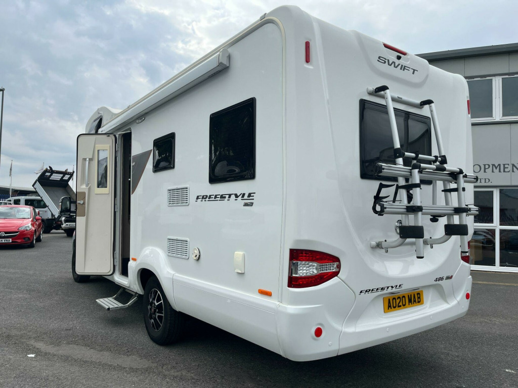 Browns Littleover Ltd are pleased to present for sale this 2020 Fiat Swift Edge 486 6 Berth Motorhome. This luxurious and spacious family motorhome has covered only 8,686 miles and is in excellent condition, it boasts a fantastic specification and is equip with all the extras you will need! Last service carried out on the 31/05/2025 at 4,879 miles, this service also Included a cambelt and water pump replacement. If you would like any further information on this vehicle regarding specification, service details or if you would like to organise a viewing then please contact us. All of our vehicles come with an Evolution world warranty included, a minimum of 6 months MOT and are fully HPI Checked with Auto Trader. Extended warranties, Finance and UK delivery are also available and part exchanges are welcome.. 12v Power, ABS, Air Con, Air Conditioning, Alarm, Alloy Wheels, Bike Rack, Blinds, Bluetooth, Cab Air Conditioning, CD / Radio, Central Locking, Cruise Control, Cycle Rack, Double Beds, Electric Entrance Step, Electric Mirrors, Electric Windows, Fire Extinguisher, Hob, Hot and Cold Shower Unit, Microwave, Microwave and Grill, Overcab Bed, Power Steering, Rear Seat belts, Reverse Camera, Reversing Sensors, Sat Nav, Satellite Navigation, Shower, Sink, Toilet.