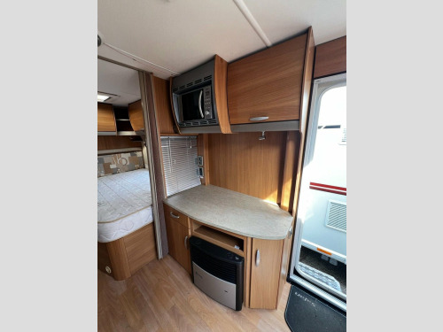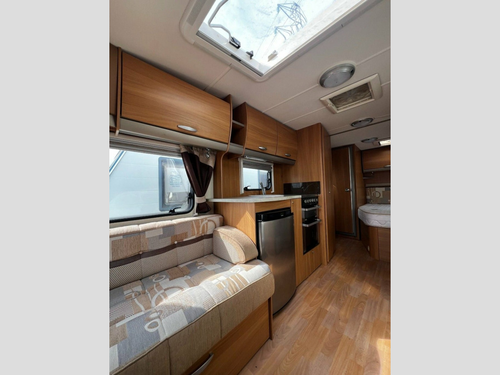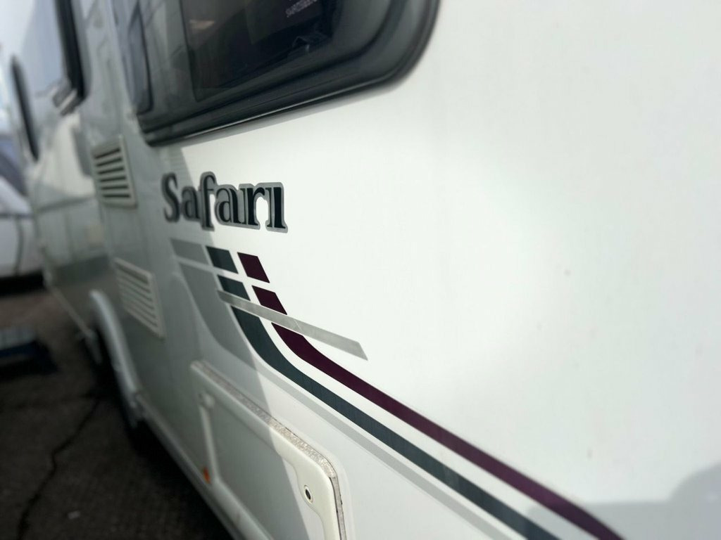 Swift Safari 555 Make: Swift Model: Safari Berth: Four Year: 2010 Habitation Length: 19ft 3in Unladen Weight: 1,283kg Features: Fixed Double Bed, Alloy Wheels, Full Oven, Microwave, Large Skylight, Awning and Cara-Cover, CD Player, External BBQ Point, AKS Stabiliser.
