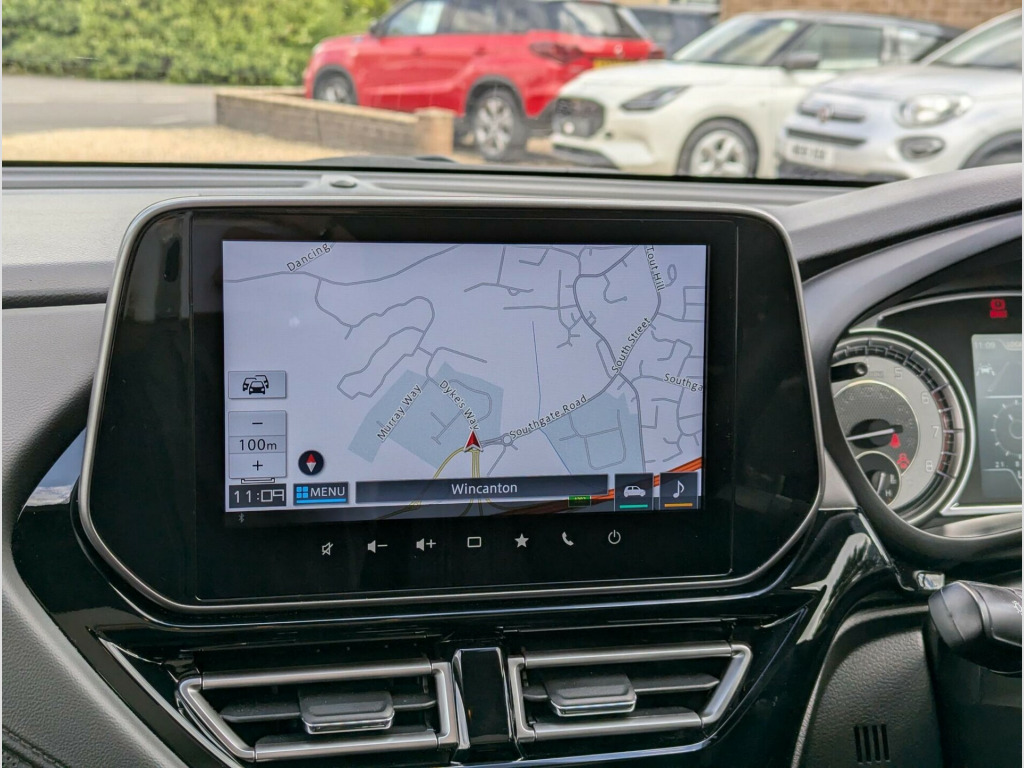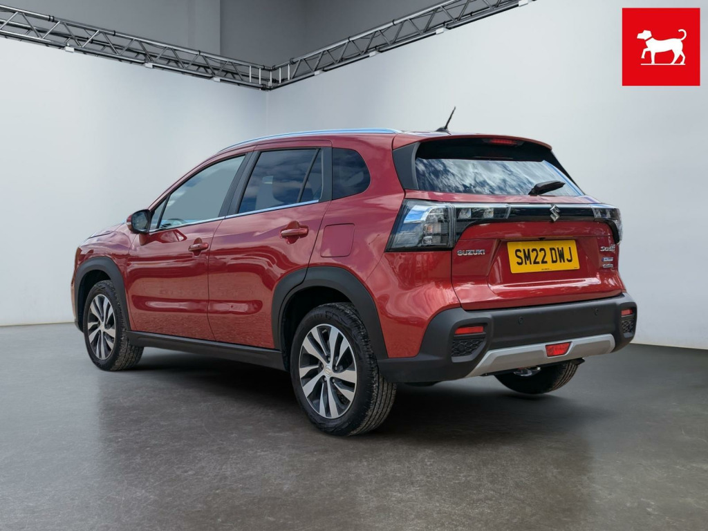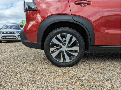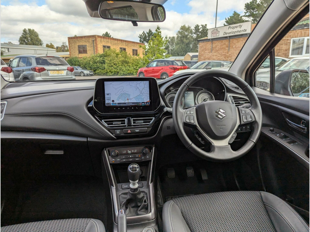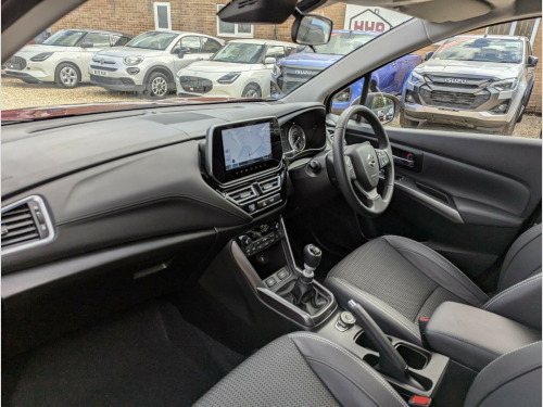 The Suzuki S-Cross 1. 4 Boosterjet MHEV Ultra SUV is a harmonious blend of efficiency and capability, tailored for the modern driver. Equipped with a petrol hybrid engine, it delivers a balanced performance while maintaining fuel efficiency, thanks to its Euro 6 compliance. The AllGrip 4-mode system ensures superior control and adaptability across varying terrains, making it an ideal choice for both city and countryside driving. Its manual transmission offers a dynamic driving experience, appealing to those who enjoy a more engaged drive. The exterior of this SUV is strikingly finished in a vibrant red, complemented by polished 17-inch alloy wheels that add a touch of sophistication. It boasts body-coloured exterior door handles and mirrors that enhance its sleek, cohesive look. The double sliding panoramic sunroof not only elevates the vehicle's aesthetic appeal but also invites an abundance of natural light into the cabin. Chrome window sills and the front grille further accentuate its modern styling, ensuring the S-Cross stands out on any road. Step inside to discover a wealth of features designed for convenience and safety. The 9-inch infotainment display, complete with navigation and smartphone integration, ensures you stay connected on the move. Comfort is prioritised with heated front seats, dual-zone automatic air conditioning, and a 2-position reclining rear seat. Safety features abound, from the 360-view camera and adaptive cruise control to the blind spot monitor and lane departure warning. With additional amenities such as a 12V accessory socket, keyless entry, and a comprehensive audio system, the S-Cross offers a well-rounded package for discerning drivers.
