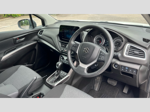Suzuki S-Cross 1.5 Hybrid Motion 5dr AGS 4.2" colour LCD information display, 7" infotainment display, Adaptive cruise control with speed limiter, Blind spot monitor, Bluetooth integrated into audio unit, eCall emergency call system, Emergency stop signalling system, Engine auto start/stop system, Front and rear parking sensors, Lane departure prevention, Lane departure warning system, PAS, Rear cross traffic alert, Rear parking camera, Smartphone link display with Apple CarPlay and Android Auto, Tachometer, Traffic sign recognition, Trip computer, Weaving alert, 2 Tweeters, 4 speakers, DAB Digital radio, Steering wheel mounted audio controls, USB connection, 1 speed with intermittent rear wiper + washer, 2 speeds (low/high) with adjustable intermittent front wiper + washer, Aluminium roof rails, Automatic headlamp levelling, Automatic headlights, Automatic wipers, Body colour door handles, Body colour door mirrors, Chrome effect window sills, Chrome front grille, Electric front windows, Electric rear windows, Electrically adjustable door mirrors, Electrically folding door mirrors with built-in turn signal lamp, Front fog lamps, Front/rear and under body trim - silver, Heated door mirrors, LED daytime running lights, LED headlamps (low and high beam), LED rear combination lamp, Manual day/night rear view mirror, Rain sensing front wipers, Rear fog lamp, Rear privacy glass, Rear side wing doors, Side louver bezels in silver, Third brake light, Visible VIN plate, Wheel arch extensions, 12V accessory socket in centre lower box, 12V accessory socket in luggage area, 2 stage reclining rear seats, 2x Front and rear door bottle holders, 3 seat bench in 2nd row, 3 spoke leather covered steering wheel, 4x cup holders (x2 front, x2 rear), 60/40 split folding rear seat, Centre cabin light, Centre console storage, Centre lower box, Centre lower console box lights, Child seat tether anchorages x3, Chrome interior door handles, Driver and front passenger heated seats, Driver's seat height adjuster, Driver's side foot rest, Driver/front passenger sunvisors with ticket holders + illuminated vanity mirrors, Dual zone automatic air conditioning, Fabric upholstery, Front centre armrest, Front fabric door trim insert, Front footwell lights, Front headrests, Front map light, Front passenger side seatback pocket, Gearshift paddles, Glovebox light, Heater, ISOFIX child seat anchorages X 2, Luggage area cover, Luggage area lamp, Luggage area shopping bag hook, net hook x 2, Passenger's side assist grips, Pollen filter, Rear assist grips x2, Rear centre armrest, Rear headrests, Removable double luggage room floor, Shift knob piano black with silver accent, Single front passenger seat, Telescopic steering wheel adjustment, Tilt adjustable steering wheel, 3 Point ELR rear seat belts x3, ABS+EBD+Brake assist, Childproof rear door locks, Curtain airbags, Driver and passenger airbags, Drivers knee airbag, Dual sensor brake support, ESP, Front 3 point ELR seatbelts with pretensioner and force limiter, Front and rear seatbelt reminder, Front passenger airbag deactivation, Height adjustable front seatbelts, Hill hold control, Side airbags, Side impact protection beams, Traction control, Tyre pressure monitoring system, Deadlocks, Freewheeling key cylinders, Immobiliser, Keyless entry and start, Light - on and Key in reminder, Locking wheel nuts, Remote central door locking, Security alarm, 17" Painted alloy wheels, Emergency flat tyre repair kit