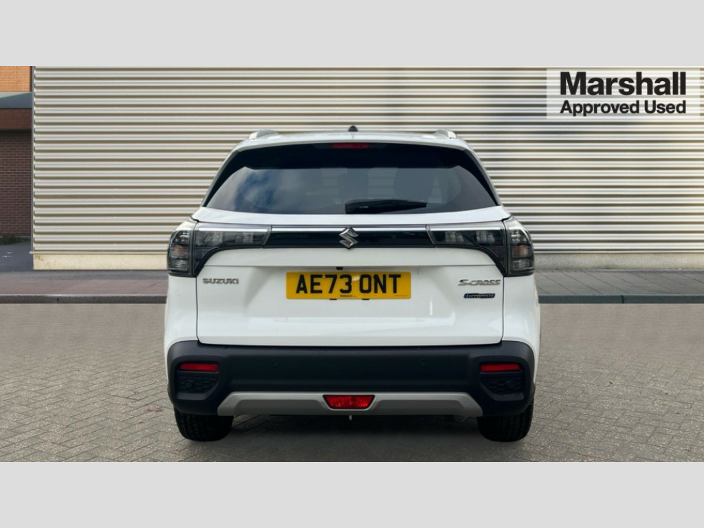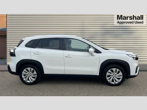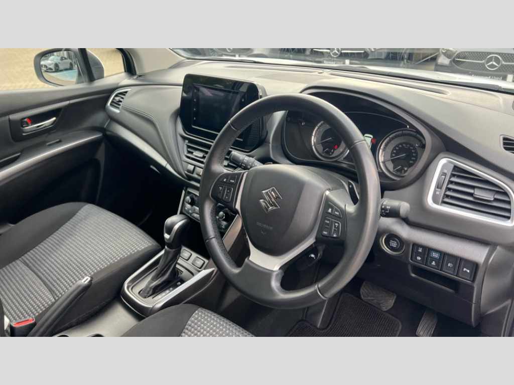 Suzuki S-Cross 1.5 Hybrid Motion 5dr AGS 4.2" colour LCD information display, 7" infotainment display, Adaptive cruise control with speed limiter, Blind spot monitor, Bluetooth integrated into audio unit, eCall emergency call system, Emergency stop signalling system, Engine auto start/stop system, Front and rear parking sensors, Lane departure prevention, Lane departure warning system, PAS, Rear cross traffic alert, Rear parking camera, Smartphone link display with Apple CarPlay and Android Auto, Tachometer, Traffic sign recognition, Trip computer, Weaving alert, 2 Tweeters, 4 speakers, DAB Digital radio, Steering wheel mounted audio controls, USB connection, 1 speed with intermittent rear wiper + washer, 2 speeds (low/high) with adjustable intermittent front wiper + washer, Aluminium roof rails, Automatic headlamp levelling, Automatic headlights, Automatic wipers, Body colour door handles, Body colour door mirrors, Chrome effect window sills, Chrome front grille, Electric front windows, Electric rear windows, Electrically adjustable door mirrors, Electrically folding door mirrors with built-in turn signal lamp, Front fog lamps, Front/rear and under body trim - silver, Heated door mirrors, LED daytime running lights, LED headlamps (low and high beam), LED rear combination lamp, Manual day/night rear view mirror, Rain sensing front wipers, Rear fog lamp, Rear privacy glass, Rear side wing doors, Side louver bezels in silver, Third brake light, Visible VIN plate, Wheel arch extensions, 12V accessory socket in centre lower box, 12V accessory socket in luggage area, 2 stage reclining rear seats, 2x Front and rear door bottle holders, 3 seat bench in 2nd row, 3 spoke leather covered steering wheel, 4x cup holders (x2 front, x2 rear), 60/40 split folding rear seat, Centre cabin light, Centre console storage, Centre lower box, Centre lower console box lights, Child seat tether anchorages x3, Chrome interior door handles, Driver and front passenger heated seats, Driver's seat height adjuster, Driver's side foot rest, Driver/front passenger sunvisors with ticket holders + illuminated vanity mirrors, Dual zone automatic air conditioning, Fabric upholstery, Front centre armrest, Front fabric door trim insert, Front footwell lights, Front headrests, Front map light, Front passenger side seatback pocket, Gearshift paddles, Glovebox light, Heater, ISOFIX child seat anchorages X 2, Luggage area cover, Luggage area lamp, Luggage area shopping bag hook, net hook x 2, Passenger's side assist grips, Pollen filter, Rear assist grips x2, Rear centre armrest, Rear headrests, Removable double luggage room floor, Shift knob piano black with silver accent, Single front passenger seat, Telescopic steering wheel adjustment, Tilt adjustable steering wheel, 3 Point ELR rear seat belts x3, ABS+EBD+Brake assist, Childproof rear door locks, Curtain airbags, Driver and passenger airbags, Drivers knee airbag, Dual sensor brake support, ESP, Front 3 point ELR seatbelts with pretensioner and force limiter, Front and rear seatbelt reminder, Front passenger airbag deactivation, Height adjustable front seatbelts, Hill hold control, Side airbags, Side impact protection beams, Traction control, Tyre pressure monitoring system, Deadlocks, Freewheeling key cylinders, Immobiliser, Keyless entry and start, Light - on and Key in reminder, Locking wheel nuts, Remote central door locking, Security alarm, 17" Painted alloy wheels, Emergency flat tyre repair kit