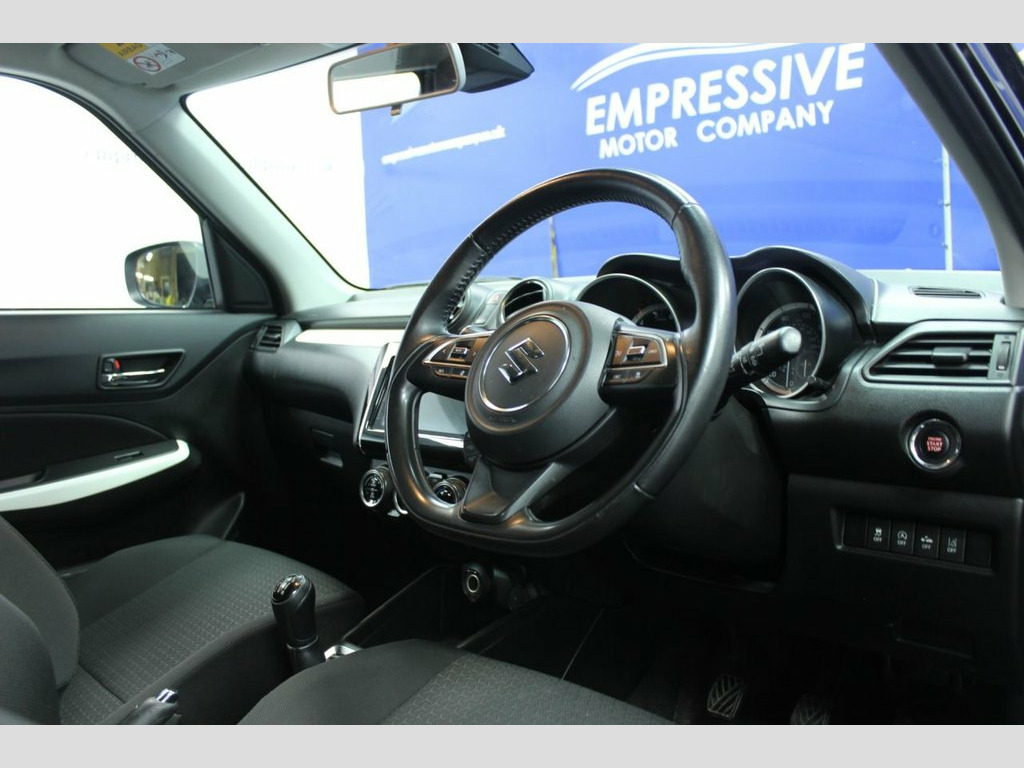 ****SUPERB SWIFT**** Just in! This Stunning 2019 SUZUKI SWIFT 1.0 Boosterjet GPF SHVS SZ5 Hatchback 5dr Petrol Hybrid Manual Euro 6 (s/s) (111 ps) Finished In Black! 58,308 miles - 1.0L petrol - ULEZ Compliant - 16" Diamond cut wheels - Automatic LED headlights - Touch media screen with sat nav - Bluetooth - USB - Aux - Automatic climate control - Voice control - Cruise control - Speed limiter - Auto wipers - Traction control - Start stop - Lane assist - Electric folding mirrors 16in Alloy Wheels - Polished, 3 Cup Holders x2 Front - x1 Rear, 3-Spoke Leather Covered Steering Wheel, 4.2in Colour LCD Display, ABS with EBD and Brake Assist Function, Adaptive Cruise Control, Automatic Air Conditioning, Automatic Headlamps, Black Coloured A and B Pillars, Bluetooth Integrated into Audio Unit, Body Coloured Exterior Mirrors and Door , Centre Console with Storage, Centre Lower Box, Child Seat Tether Anchorages x 2, Childproof Rear Door Locks, Chrome Hand Brake Release Button, Chrome Interior Door Handles, DAB Digital Radio, Deadlocks, Digital Clock, Driver and Front Passenger Airbags, Driver Seat Height Adjuster, Dual Sensor Brake Support - AEB, Electric Front Windows, Elec