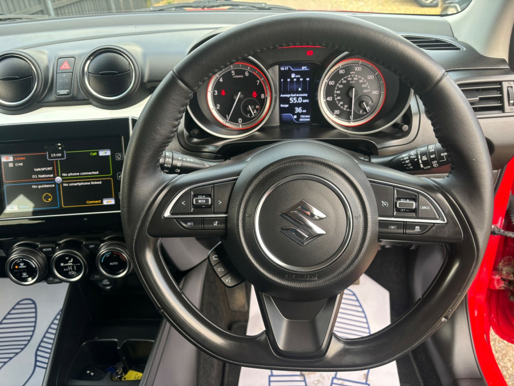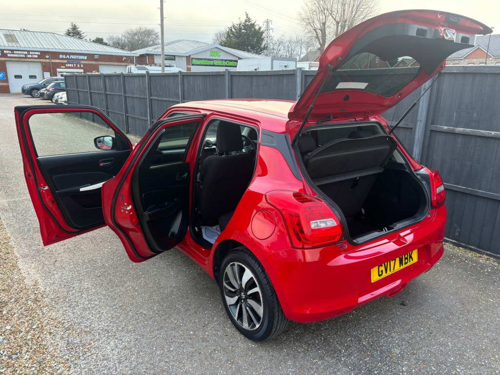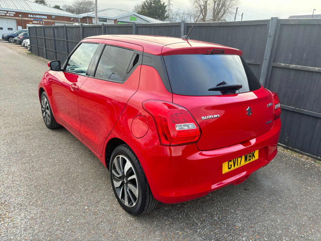 Comes with 1 Year MOT - 1 Year Warranty - Serviced on sale - We offer finance on our cars from £0 deposit - please contact the office for more info *** This 2017 Suzuki Swift 1.0 Boosterjet SHVS SZ5 Hatchback with just 48376 miles on the clock is a fantastic choice for those looking for a reliable and efficient vehicle. Powered by a Petrol Hybrid engine and equipped with a manual transmission, this Euro 6 (s/s) model is ULEZ compliant and has an MOT valid until 06/11/2026 which comes renewed on sale. This 5-door hatchback offers 5 seats, making it ideal for families or those needing extra space. The exterior features 16in Alloy Wheels, Black Coloured A and B Pillars, and Body Coloured Electrically Adjustable and Heated Door Mirrors for added style and convenience. Electric Front Windows, Body Coloured Exterior Mirrors and Door Handles complete the sleek and modern look of this car. This Suzuki Swift is a versatile and practical choice for anyone in the market for a reliable, economical, and well-equipped vehicle., We offer 1 Year MOT, 1 Year Warranty & service included on all our stock. Finance is available on all our stock please contact our Office. in alloy wheels - polished, black coloured a and b pillars, body coloured - electrically adjustable and heated door mirrors, body coloured exterior mirrors and door handles, electric front windows, electric rear windows, electrically folding door mirrors with built-in turn signal lamp, emergency flat tyre repair kit, locking wheel bolts, rear fog lamps, rear privacy glass, 3 cup holders x2 front - x1 rear, 3-spoke leather covered steering wheel, automatic air conditioning, centre console with storage, centre lower box, chrome hand brake release button, chrome interior door handles, driver seat height adjuster, front map light, front passenger side assist grip, front passenger side seatback pocket, front sunvisors with vanity mirrors and ticket holder, front wiper with adjustable intermittent, glove box, luggage area shelf and lamp, pearl white instrument panel and front door trim, pollen filter, rear assist grips x2, rear seat head restraint x3, rear seat with 60-40 split folding, steering wheel - tilt-adjustable, steering wheel mounted audio controls, storage pocket with bottle holder in all doors, telescopic adjustable steering wheel, 4.2in colour lcd display, bluetooth integrated into audio unit, dab digital radio, front accessory socket, front tweeters x 2, navigation system, smartphone linkage display audio, speakers x4, usb and aux connectors - console box, abs with ebd and brake assist function, child seat tether anchorages x 2, childproof rear door locks, deadlocks, driver and front passenger airbags, dual sensor brake support - aeb, esp - electronic stability program, freewheeling key cylinders, front 3-point elr seatbelts, front passenger airbag deactivation system, front and rear seatbelt warning lamp and alarm, hill hold control, isofix child seat anchorages, immobiliser, keyless entry with engine start button, rear 3-point elr seatbelts, rear wiper with intermittent, remote central door locking, side and curtain airbags, adaptive cruise control, fuel consumption display - average-instantaneous and range, lane departure warning, rear parking camera, tpms - tyre pressure monitoring system, tachometer, automatic headlamps, front fog lights, guide me home light function, high beam assist, led daytime running lights - integrated in headlamps, led projector headlamps, led rear lights, 12 months mot, 12 months warranty, 2 keys, apple car play, rear view camera