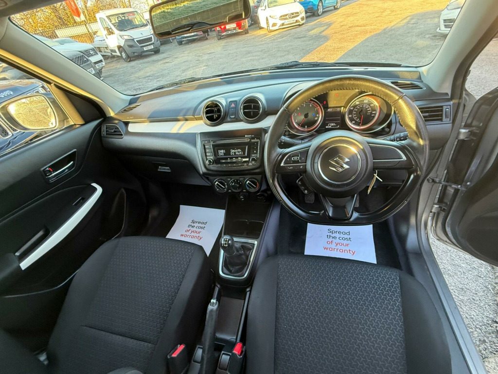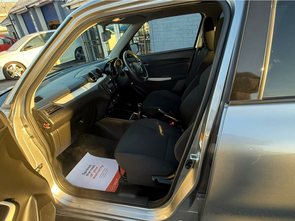 Discover this 2019 Suzuki Swift Attitude with exceptionally low mileage for its age, having covered just 27,000 miles. This Euro 6 compliant model boasts a 1.2 litre petrol engine and features manual air conditioning, integrated Bluetooth for your audio system, and a rear parking camera to assist with manoeuvring. The convenience of automatic headlamps further enhances your driving experience.This Suzuki Swift Attitude stands out with its low CO2 emissions, indicating a more environmentally conscious choice compared to many similar vehicles. The combination of its modest mileage, desirable Attitude trim, and practical features like the parking camera and Bluetooth connectivity make this a compelling option for anyone seeking a well maintained and efficient compact car. in alloy wheels - polished, 3 cup holders x2 front - x1 rear, 3-spoke leather covered steering wheel, abs with ebd and brake assist function, automatic headlamps, black coloured a and b pillars, bluetooth integrated into audio unit, body coloured - electrically adjustable and heated door mirrors, body coloured exterior mirrors and door handles, centre console with storage, centre lower box, child seat tether anchorages x 2, childproof rear door locks, chrome hand brake release button, chrome interior door handles, dab digital radio, deadlocks, digital clock, driver seat height adjuster, driver and front passenger airbags, esp - electronic stability program, electric front windows, emergency flat tyre repair kit, foot protecting brake and clutch pedals, freewheeling key cylinders, front - side and rear carbon effect skirts, front 3-point elr seatbelts, front accessory socket, front assist grips passenger side, front fog lights, front map light, front passenger airbag deactivation system, front passenger side seatback pocket, front sunvisors with vanity mirrors and ticket holder, front wiper with adjustable intermittent, front and rear seatbelt reminder, fuel consumption display - average-instantaneous and range, gear shift indicator, glove box, green tinted windows, guide me home light function, halogen multi-reflector headlights, high mounted brake light, isofix child seat anchorages, immobiliser, led daytime running lights - mounted on front bumper, lights-on and key-in reminder, locking wheel bolts, low fuel warning light, luggage area shelf and lamp, manual air conditioning, mesh front grille with chrome trim, outside temperature display, pollen filter, power steering, rear 3-point elr seatbelts, rear fog lamps, rear parking camera, rear privacy glass, rear seat with 60-40 split folding, rear seats with neck rest x2, rear upper spoiler, rear wiper with intermittent, remote central door locking, side impact protection beams, side and curtain airbags, smartphone linkage display audio, speakers x4, steering wheel - tilt-adjustable, steering wheel mounted audio controls, storage pocket with bottle holder in all doors, tpms - tyre pressure monitoring system, tachometer, usb and aux connectors - console box, white instrument panel and front door trim