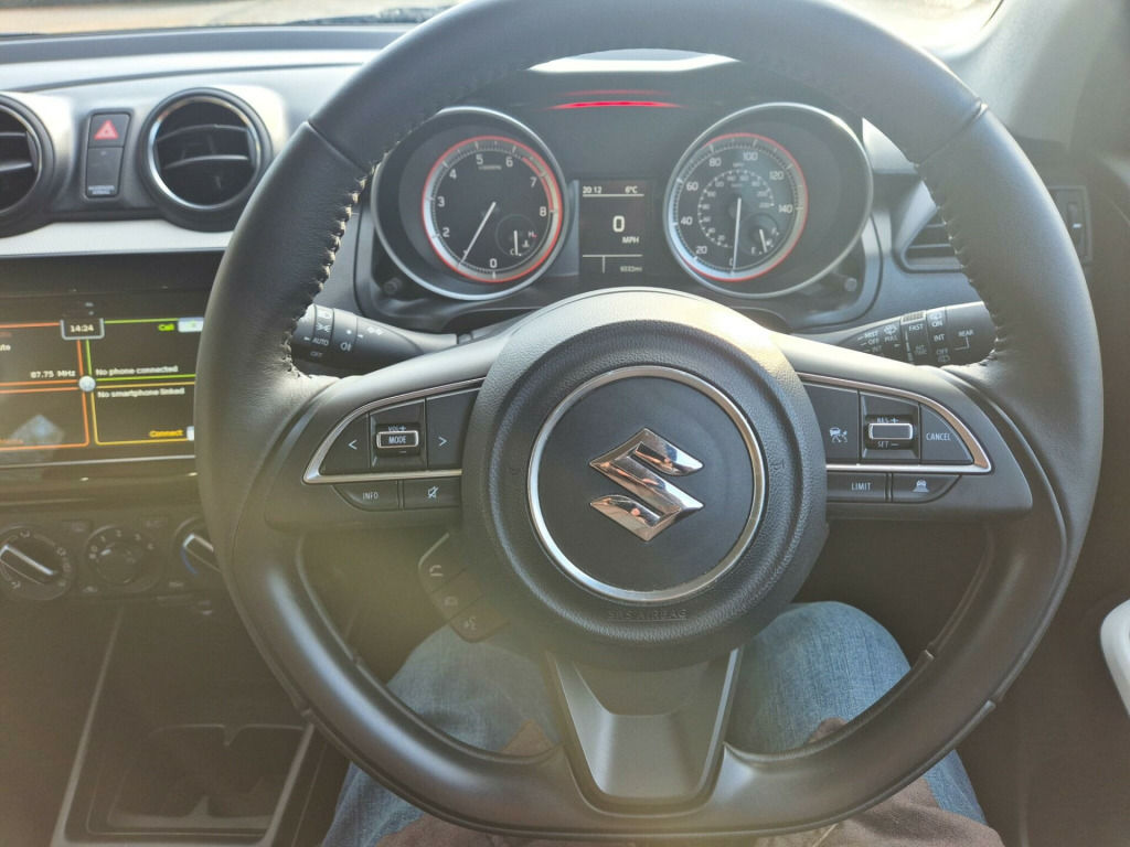 VERY POPULAR SUZUKI SWIFT, MILD HYBRID VERY CHEAP TO RUN, LOOKS LIKE NEW FOR HALF THE PRICE, JUST BEEN MOT, 6-MONTH WARRANTY, JUST BEEN SERVICED, LOOKS & DRIVES GREAT, COMES WITH 2 KEYS. HPI CLEAR. AIDANS AUTOMOBILES IS BASED IN WOMBWELL, BARNSLEY, S73 8DQ. THE VAST MAJORITY OF CARS COME WITH A 6 MONTH WARRANTY, ARE HPI CLEAR, HAVE SERVICE HISTORY AND A LONG MOT (MOST HAVE A FRESH 12 MONTH). PX AVAILABLE. ANY QUESTIONS OR TO BOOK AN APPOINTMENT PLEASE CALL ON 01226 754006. WE DO VIEWING BY APPOINTMENT TO AVOID YOU HAVING A WASTED JOURNEY. WWW.AIDANSAUTOMOBILES.CO.UK. 16in Alloy Wheels - Polished, 3 Cup Holders x2 Front - x1 Rear, 3-Spoke Leather Covered Steering Wheel, 4.2in Colour LCD Display, ABS with EBD and Brake Assist Function, Adaptive Cruise Control, Automatic Headlamp Levelling, Automatic Headlamps, Black Coloured A and B Pillars, Bluetooth Integrated into Audio Unit, Body Coloured Exterior Door Handles, Centre Console with Storage, Centre Lower Box, Child Seat Tether Anchorages x 2, Childproof Rear Door Locks, Chrome Hand Brake Release Button, Chrome Interior Door Handles, DAB Digital Radio, Deadlocks, Driver Seat Height Adjuster, Driver and Front Passenger Airbags, ESP - Electronic Stability Program, Electric Front Windows, Electrically Adjustable and Heated Door Mirrors, Emergency Flat Tyre Repair Kit, Foot Protecting Brake and Clutch Pedals, Freewheeling Key Cylinders, Front 3-Point ELR Seatbelts, Front Accessory Socket, Front Assist Grips Passenger Side, Front Cabin Light, Front Fog Lights, Front Grille - Chrome and Black, Front Map Light, Front Passenger Airbag Deactivation System, Front Passenger Side Seatback Pocket, Front Sunvisors with Vanity Mirrors and Ticket Holder, Front Wiper with Adjustable Intermittent, Front and Rear Seatbelt Reminder, Fuel Consumption Display - Average-Instantaneous and Range, Gear Shift Indicator, Glove Box, Green Tinted Windows, Guide Me Home Light Function, Heater, High Beam Assist, High Mounted Brake Light, Hill Hold Control, ISOFIX Child Seat Anchorages, Immobiliser, LED Daytime Running Lights - Integrated in Headlamps, LED Position Lamps, LED Projector Headlamps, LED Rear Combination Lights, Lights-On and Key-In Reminder, Low Fuel Warning Light, Luggage Area Shelf and Lamp, Manual Air Conditioning, Outside Temperature Display, Pollen Filter, Power Steering, Radar Brake Support, Rear 3-Point ELR Seatbelts, Rear Fog Lamps, Rear Parking Camera, Rear Privacy Glass, Rear Seat Head Restraint x2, Rear Seat with 60-40 Split Folding, Rear Wiper with Intermittent, Remote Central Door Locking, Side Impact Protection Beams, Side and Curtain Airbags, Smartphone Linkage Display Audio, Speakers x4, Steering Wheel - Tilt-Adjustable, Steering Wheel Mounted Audio Controls, Storage Pocket with Bottle Holder in All Doors, TPMS - Tyre Pressure Monitoring System, Tachometer, USB and AUX Connectors - Console Box, White Instrument Panel and Front Door Trim.