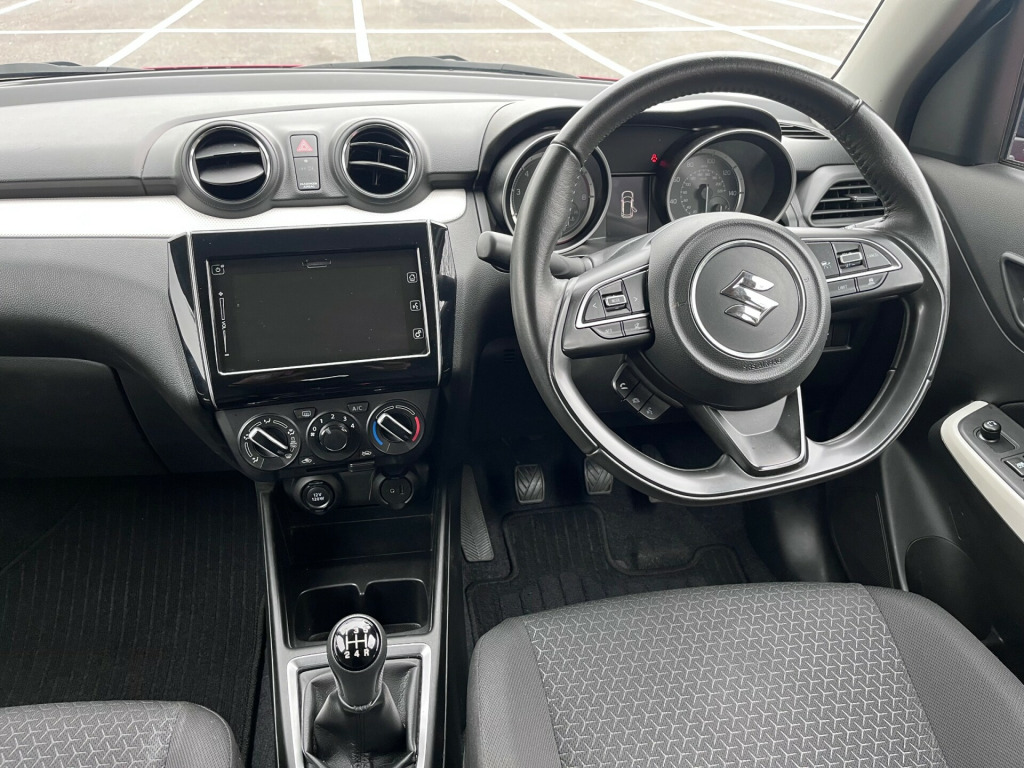 2023 Suzuki Swift15340 miles1 former keeper Full service history Part exchange welcome , in alloy wheels - polished, black coloured a and b pillars, body coloured exterior door handles, electric front windows, electrically adjustable and heated door mirrors, emergency flat tyre repair kit, front grille - chrome and black, green tinted windows, rear fog lamps, rear privacy glass, 3 cup holders x2 front - x1 rear, 3-spoke leather covered steering wheel, centre console with storage, centre lower box, chrome hand brake release button, chrome interior door handles, driver seat height adjuster, foot protecting brake and clutch pedals, front assist grips passenger side, front cabin light, front map light, front passenger side seatback pocket, front sunvisors with vanity mirrors and ticket holder, front wiper with adjustable intermittent, glove box, heater, luggage area shelf and lamp, manual air conditioning, pollen filter, rear seat head restraint x2, rear seat with 60-40 split folding, steering wheel - tilt-adjustable, steering wheel mounted audio controls, storage pocket with bottle holder in all doors, white instrument panel and front door trim, 4.2in colour lcd display, bluetooth integrated into audio unit, dab digital radio, front accessory socket, smartphone linkage display audio, speakers x4, usb and aux connectors - console box, abs with ebd and brake assist function, child seat tether anchorages x 2, childproof rear door locks, deadlocks, driver and front passenger airbags, esp - electronic stability program, freewheeling key cylinders, front 3-point elr seatbelts, front passenger airbag deactivation system, front and rear seatbelt reminder, hill hold control, isofix child seat anchorages, immobiliser, radar brake support, rear 3-point elr seatbelts, rear wiper with intermittent, remote central door locking, side impact protection beams, side and curtain airbags, adaptive cruise control, fuel consumption display - average-instantaneous and range, gear shift indicator, lights-on and key-in reminder, low fuel warning light, outside temperature display, power steering, rear parking camera, tpms - tyre pressure monitoring system, tachometer, automatic headlamp levelling, automatic headlamps, front fog lights, guide me home light function, high beam assist, high mounted brake light, led daytime running lights - integrated in headlamps, led position lamps, led projector headlamps, led rear combination lights