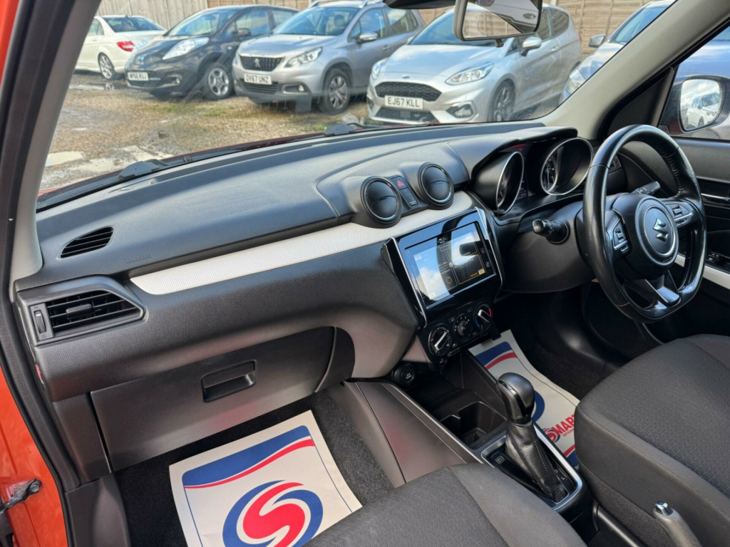 Discover this 2020 Suzuki Swift SZ T, a smart choice for your next vehicle. This model is powered by an efficient 1.2 litre petrol hybrid engine, meeting Euro 6 emission standards. It comes equipped with a rear parking camera and rear parking sensors to assist you when manoeuvring. Stay connected and entertained with the integrated Bluetooth system, which also supports Smartphone Linkage Display Audio, offering seamless integration with both Android Auto and Apple CarPlay. For clear visibility, it features LED projector headlamps.The Suzuki Swift SZ T stands out with its blend of modern technology and practical features. The inclusion of a rear parking camera and sensors makes parking simpler and safer, a notable advantage over many other cars in its class. Furthermore, the Smartphone Linkage Display Audio system, compatible with Android Auto and Apple CarPlay, ensures your favourite apps and navigation are easily accessible, enhancing your driving experience. The efficient hybrid engine and LED lighting further contribute to its appeal as a well equipped and economical option. in alloy wheels - painted, 3 cup holders x2 front - x1 rear, 3-spoke leather covered steering wheel, 4.2in colour lcd display, abs with ebd and brake assist function, adaptive cruise control, automatic headlamp levelling, automatic headlamps, black coloured a and b pillars, blind spot monitor, bluetooth integrated into audio unit, body coloured exterior door handles, centre console with storage, centre lower box, child seat tether anchorages x 2, childproof rear door locks, chrome hand brake release button, chrome interior door handles, dab digital radio, deadlocks, driver seat height adjuster, driver and front passenger airbags, dual sensor brake support - aeb, esp - electronic stability program, electric front windows, electrically adjustable and heated door mirrors, emergency flat tyre repair kit, foot protecting brake and clutch pedals, freewheeling key cylinders, front 3-point elr seatbelts, front accessory socket, front assist grips passenger side, front cabin light, front fog lights, front grille - chrome and black, front map light, front passenger airbag deactivation system, front passenger side seatback pocket, front sunvisors with vanity mirrors and ticket holder, front wiper with adjustable intermittent, front and rear seatbelt reminder, fuel consumption display - average-instantaneous and range, gear position indicator, gear shift paddles, glove box, green tinted windows, guide me home light function, heater, high beam assist, high mounted brake light, hill hold control, isofix child seat anchorages, immobiliser, led daytime running lights - integrated in headlamps, led position lamps, led projector headlamps, led rear combination lights, lane departure warning, lights-on and key-in reminder, locking wheel bolts, low fuel warning light, luggage area shelf and lamp, manual air conditioning, outside temperature display, pollen filter, power steering, rear 3-point elr seatbelts, rear cross traffic alert, rear fog lamps, rear parking camera, rear parking sensors, rear privacy glass, rear seat head restraint x2, rear seat with 60-40 split folding, rear wiper with intermittent, remote central door locking, side impact protection beams, side and curtain airbags, smartphone linkage display audio, speakers x4, steering wheel - tilt-adjustable, steering wheel mounted audio controls, storage pocket with bottle holder in all doors, tpms - tyre pressure monitoring system, tachometer, traffic sign recognition, usb and aux connectors - console box, weaving alert, white instrument panel and front door trim