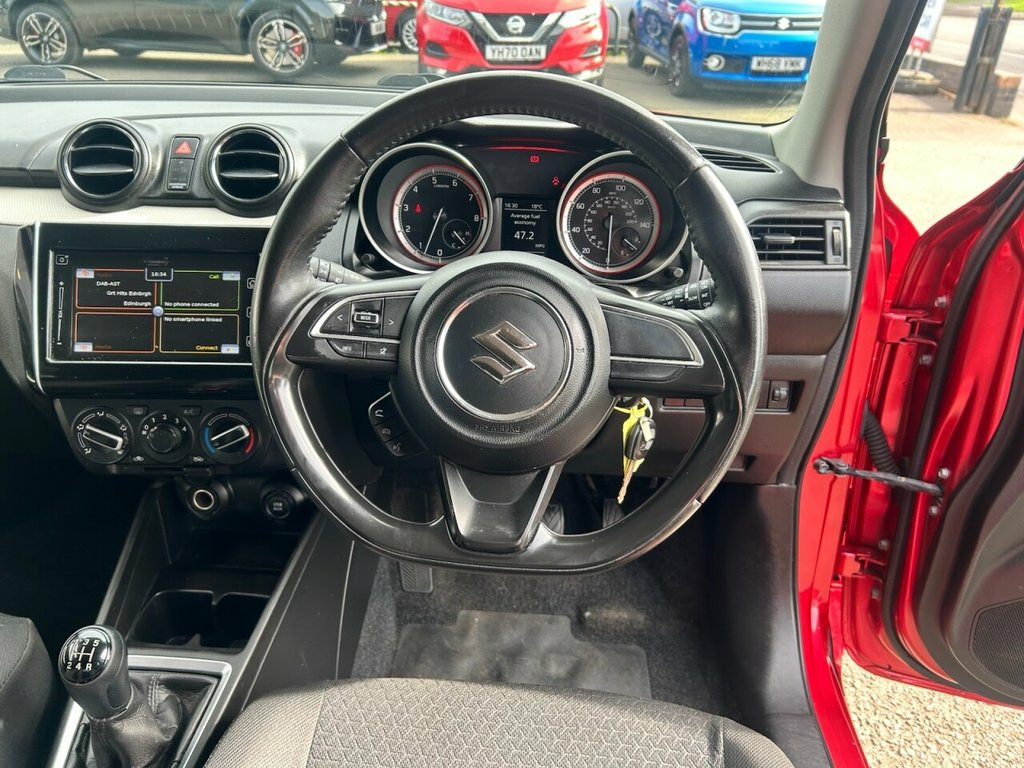 Here we have a cracking SUZUKI SWIFT 1.2 Dualjet MHEV SZ-T Hatchback 5dr Petrol Hybrid Manual Euro 6 (s/s) (90 ps) which has only done 43763 Miles from New with a service history. The car will also come supplied with a 1 Year MOT, 1 Year Scot Sure Warranty and Fully Serviced. IF YOU WOULD LIKE TO ARRANGE A VIDEO PREVIEW please CALL us on 01786813476, TEXT 07776816973 or MESSAGE us on Facebook -Search "KILGANNONMOTORS". ++ABOUT US - Kilgannon Motors is a family run business based in Bannockburn, Stirling, Established in 1990 By Jamie Kilgannon. We Carefully select our STOCK from sources we have built up over the years allowing us the confidence we have in our cars. All our cars undergo a full visual health check and a full HPI check before being offered for sale. We look forward to helping you in the process of buying your next car! Visit our website or visit us on facebook for a full range of our stock. 16in Alloy Wheels, 3 Cup Holders x2 Front - x1 Rear, 3-Spoke Leather Covered Steering Wheel, ABS with EBD and Brake Assist Function, Automatic Headlamps, Black Coloured A and B Pillars, Bluetooth Integrated into Audio Unit, Body Coloured - Electrically Adjustable , Body Coloured Exterior Mirrors and Door , Centre Console with Storage, Centre Lower Box, Child Seat Tether Anchorages x 2, Childproof Rear Door Locks, Chrome Hand Brake Release Button, Chrome Interior Door Handles, DAB Digital Radio, Deadlocks, Digital Clock, Driver and Front Passenger Airbags, Driver Seat Height Adjuster, Electric Front Windows, Emergency Flat Tyre Repair Kit, ESP - Electronic Stability Program, Foot Protecting