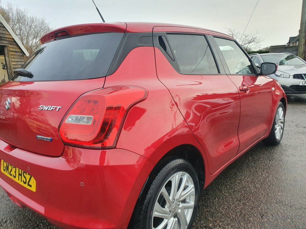 This 2023 Suzuki Swift 1.2 Dualjet MHEV SZ-T Hatchback boasts an impressive 47,983 miles on the odometer and comes equipped with a fuel-efficient Petrol Hybrid engine, Full service history and manufacturer warranty and thereafter annual warranty when serviced by Suzuki dealership it is ULEZ compliant and an environmentally friendly choice. With 5 seats and 5 doors, this stylish hatchback offers practicality and comfort for both driver and passengers. The efficient 1.2 Dualjet engine produces a respectable 83 ps, paired with a CVT Euro 6 (s/s) transmission for smooth and responsive driving. With its sleek design and top-notch performance, this Suzuki Swift is a fantastic option for anyone seeking a reliable and eco-friendly vehicle. aptive cruise control, esp, parking camera, parking sensors, power steering, abs, air bag, child locks, isofix child seat anchor points, tyre pressure monitor, alloy wheels, auto lighting, body coloured bumpers, led daytime running lights, pearlescent paint, apple/ android, smart link