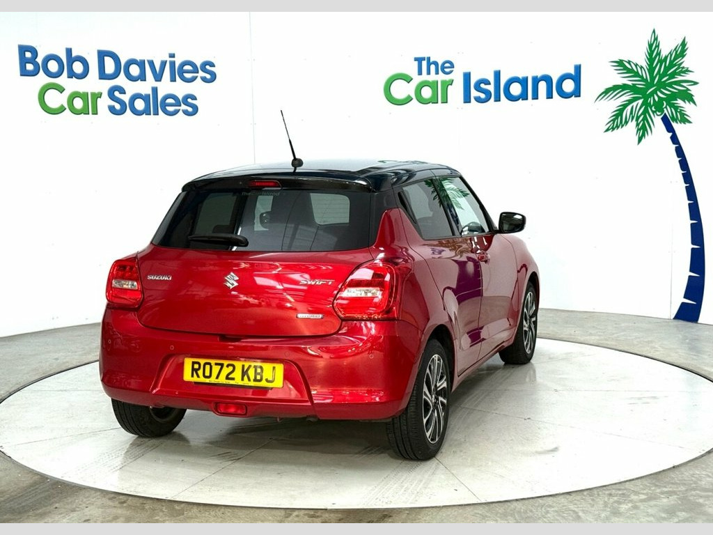 Beautiful Low Mileage Hybrid Suzuki Swift in Burning Red Pearl with Black Roof, SATNAV, CarPlay, Bluetooth Phone & Music Streaming, Adaptive Cruise, Parking Camera, Low Insurance Costs, Great Fuel Economy, EURO 6 ULEZ Compliant, Climate Control, AUX & USB, Diamond Cut Alloys, Privacy Glass, Electric Windows, Auto Lights & Wipers, Rear Spoiler, 2 Keys and Suzuki Service History to list a few.****** Bob Davies Car Sales is established as a trusted supplier of quality cars. Family business providing low mileage cars for over 40 years. High standards, great reputation & 5-star customer service. Open 6 days. Best value in 100 mile radius. ***** Request a personal walk round on any car and we'll make sure you're happy before reserving or travelling. No pressure, no fuss, no fees. Secure with £100 refundable deposit.***** . Feel confident in the quality and condition of our vehicles, our warranty covers the UK.****** Best Rate Finance available to all, even for poor credit. No deposit needed just contact us and we will tailor to suit you. PX Welcome Burning Red Pearl with Super Black Pearl, Smartphone Linkage Display Audio, Navigation System, USB and AUX Connectors - Console Box, Rear Privacy Glass, Rear Parking Sensors, Rear Parking Camera, Lane Departure Warning, LED Daytime Running Lights - Integrated , Hill Hold Control, ISOFIX Child Seat Anchorages, DAB Digital Radio, Automatic Air Conditioning, Bluetooth Integrated into Audio Unit, Electric Rear Windows, Electric Front Windows, Adaptive Cruise Control, Guide Me Home Light Function, Rear Cross Traffic Alert, Remote Central Door Locking, Steering Wheel Mounted Audio Controls, 16in Alloy Wheels - Polished, Traffic Sign Recognition