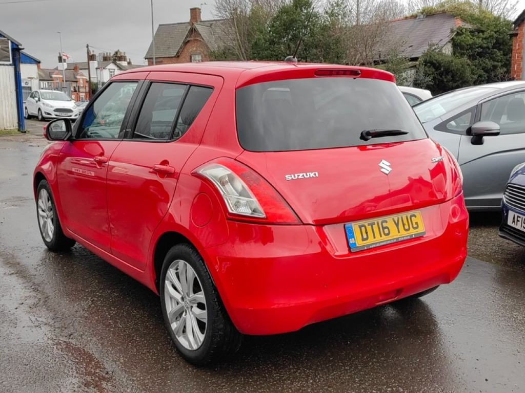 ** Just arrived and awaiting preparation, register your interest today ** 2016 SUZUKI SWIFT 1.2 DUALJET SZ4 HATCHBACK 5DR PETROL MANUAL EURO 6, ONLY THE 1 OWNER FROM BRAND NEW, FULL SERVICE HISTORY CONSISTS OF 11 RECORED SERVICES (10 MAIN DEALER), RECENTLY SERVICED AT 73K MILES, 12 MONTH MOT VALID TIL FEBRUARY 2027, SPACIOUS & PRACTICAL, FUEL EFFICIENT OFFERS UP TO 56 MPG COMBINED, £20 ANNUAL ROAD TAX & INSURANCE GROUP 10 IDEAL FOR FIRST TIME DRIVERS, HIGH SPECIFICATION FROM FACTORY FINISHED IN RED PAINT, CLOTH UHPOLSTERY, ISOFIX, 16' ALLOY WHEELS, MULTIFUNCTION STEERING WHEEL, CRUISE, CLIMATE, AIR CON, TOUCHSCREEN INFOTAINMENT, NAVIGATION, FM, AM, BLUETOOTH CONNECTVITY, CENTRAL LOCKING, ELECTRIC MIRRORS & ELECTRIC WINDOWS ++ SUPPLIED WITH 3 MONTHS WARRANTY & 12 MONTHS COMPLEMENTARY AA BREAKDOWN COVER FOR YOUR COMPLETE PEACE OF MIND ============================================ Part exchange welcome | Finance available - Zero deposit / Low credit / Tailored finance | Delivery available - T&Cs | Walk around video available on request | Indoor Showroom | View 30+ HD images on our website | FCA & VAT registered | All dealer facilities available ============================================ Book a viewing or test drive today. Call or message: 0151 339 3336 or 07397387822. Why not visit our Indoor showroom: We are located near Cheshire Oaks, M53 Junction 8. Address: 311 Chester Road, Little Sutton, Ellesmere Port, Cheshire west & Chester, CH66 3RF** 16in Alloy Wheels, ABS, Air Conditioning, Brake Assist, Cruise Control, Daytime Running Lights, ESP, Engine Immobiliser, Front Airbags, Front Fog Lights, Heated Door Mirrors, ISOFix Anchor Point, Keyless Door Locks, Power Assisted Steering, Privacy/Tinted Glass, Radio, Satellite Navigation, Side Impact Airbags, Start Stop System, Steering Wheel Controls