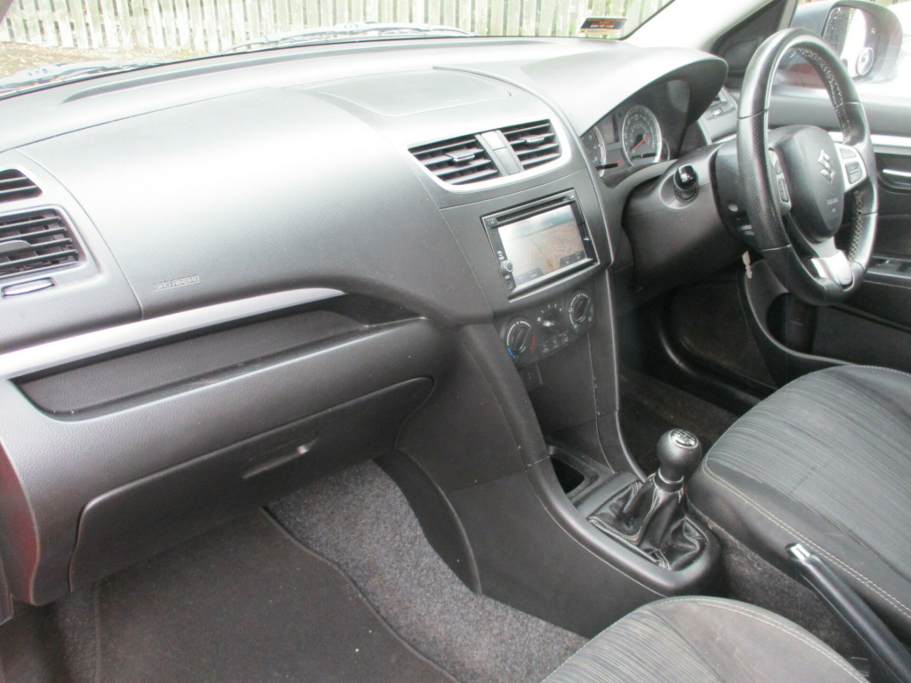 in alloy wheels - black painted, body coloured exterior door handles, body coloured exterior door mirrors, electric windows - front and rear with drivers auto down, electrically adjustable and heated door mirrors, rear privacy glass, rear upper spoiler, sz-l badge, 3 cup holders, air conditioning, black coloured a and b pillars, centre cabin light, centre console with storage, driver seat height adjuster, foot protecting brake and clutch pedals, front assist grips x2, front map light, front passenger side seatback pocket, front sun visors with vanity mirrors, glove box, luggage area light, pollen filter, rear assist grips x2, rear seat with 60-40 split folding, remote fuel lid opener, silver stitches on gear boot, steering wheel - sports style - leather covered - silver stitching, steering wheel - tilt-adjustable, steering wheel mounted audio controls, storage pocket with bottle holder in all doors, ticket holder - on drivers sun visor, upper storage tray with lid, abs - anti-lock braking system, airbag - driver, airbag - front passenger, brake assist function, child seat tether anchorages x 2, childproof rear door locks, curtain airbags, deadlocks, driver knee airbag, ebd - electronic brakeforce distribution, esp - electronic stability program, freewheeling key cylinders, front 3-point elr seatbelts with pretensioner-force limiter and height adjuster, front passenger airbag deactivation system, front seatbelt reminder - warning light and alarm, isofix child seat anchorages, immobiliser, remote central door locking, side airbags, side impact protection beams, bluetooth integrated into audio unit, dab digital radio, front accessory socket, mp3-wma compatible cd tuner, satellite navigation, speakers x4, tweeters x2, usb socket, cruise control, digital clock, fuel consumption and range display, gear shift indicator, lights-on and key-in reminder, low fuel warning light, outside temperature display, power steering, tpms - tyre pressure monitoring system, tachometer, daytime running lights - led, front fog lights, halogen multi-reflector headlights, headlamp levelling switch, high mounted brake light
