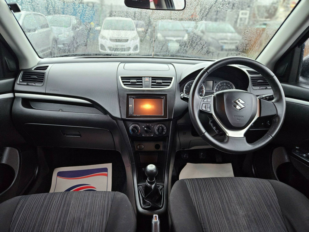 3 months warranty engine and gearbox Air Conditioning Spare wheel Bluetooth 1 keyParking sensor Discover this 2015 Suzuki Swift SZ3, a smart choice for those seeking an economical and well equipped compact car. Powered by a responsive 1.2 litre petrol engine, this Euro 6 compliant model offers an impressive fuel economy of 57 miles per gallon, making it an efficient companion for both city driving and longer journeys. Inside, you'll find comfort and convenience with air conditioning to keep you cool, and Bluetooth integrated into the audio unit, allowing for seamless connection of your devices for music and calls.The Suzuki Swift SZ3 stands out with its low insurance group rating, indicating that running costs are kept to a minimum, which is a significant advantage over many other vehicles in its class. This, combined with its excellent fuel efficiency, makes it a practical and budget friendly option for a wide range of drivers. This particular model represents a sensible and enjoyable way to get around. in alloy wheels, 3 cup holders, abs - anti-lock braking system, air conditioning, airbag - driver, airbag - front passenger, black coloured a and b pillars, bluetooth integrated into audio unit, body coloured exterior door handles, body coloured exterior door mirrors, brake assist function, centre cabin light, centre console with storage, child seat tether anchorages x 2, childproof rear door locks, curtain airbags, daytime running lights - led, deadlocks, digital clock, driver knee airbag, driver seat height adjuster, ebd - electronic brakeforce distribution, esp - electronic stability program, electric windows - front and rear with drivers auto down, electrically adjustable and heated door mirrors, foot protecting brake and clutch pedals, freewheeling key cylinders, front 3-point elr seatbelts with pretensioner-force limiter and height adjuster, front accessory socket, front assist grips x2, front fog lights, front map light, front passenger airbag deactivation system, front passenger side seatback pocket, front seatbelt reminder - warning light and alarm, front sun visors with vanity mirrors, fuel consumption and range display, gear shift indicator, glove box, halogen multi-reflector headlights, headlamp levelling switch, high mounted brake light, isofix child seat anchorages, immobiliser, lights-on and key-in reminder, low fuel warning light, luggage area light, mp3-wma compatible cd tuner, outside temperature display, pollen filter, power steering, rear assist grips x2, rear seat with 60-40 split folding, remote central door locking, remote fuel lid opener, side airbags, side impact protection beams, speakers x4, steering wheel - 3-spoke leather covered, steering wheel - tilt-adjustable, steering wheel mounted audio controls, storage pocket with bottle holder in all doors, tpms - tyre pressure monitoring system, tachometer, ticket holder - on drivers sun visor, tweeters x2, usb socket, upper storage tray with lid