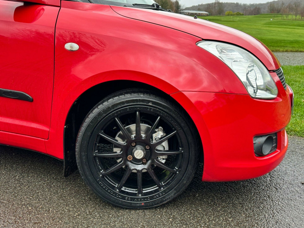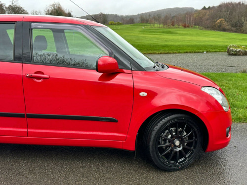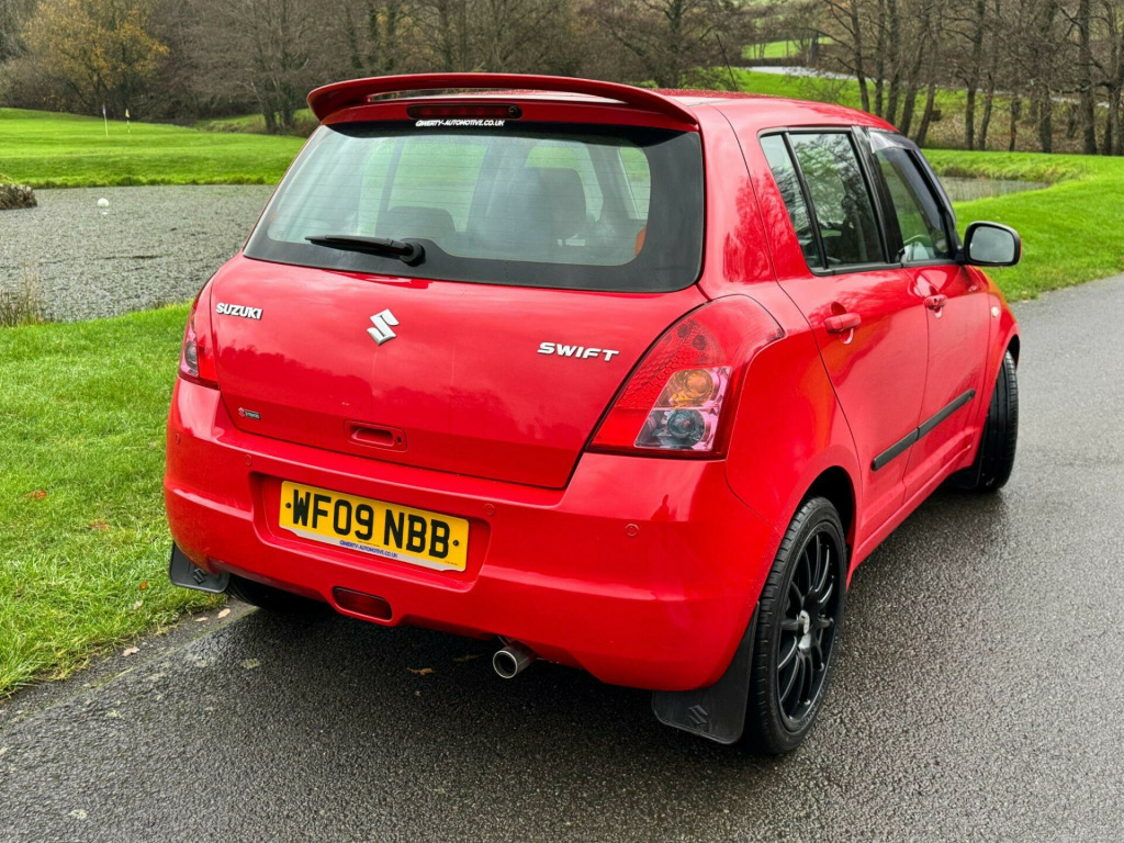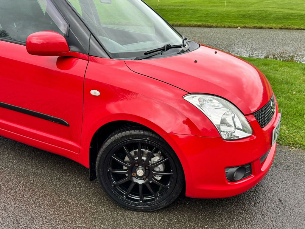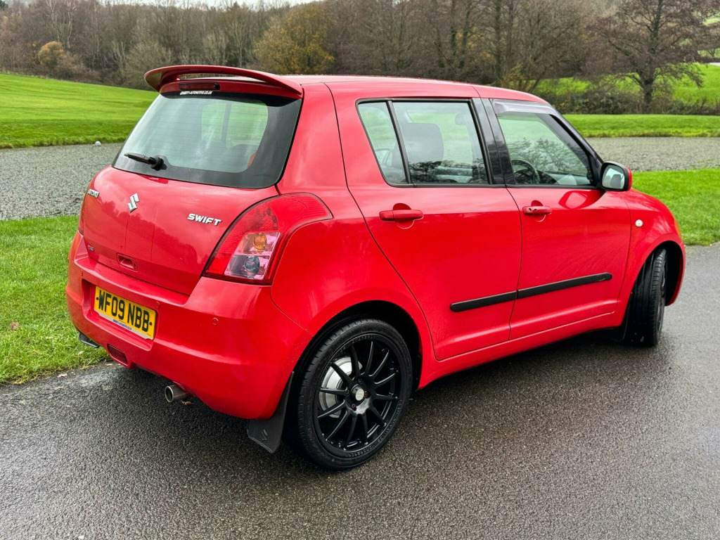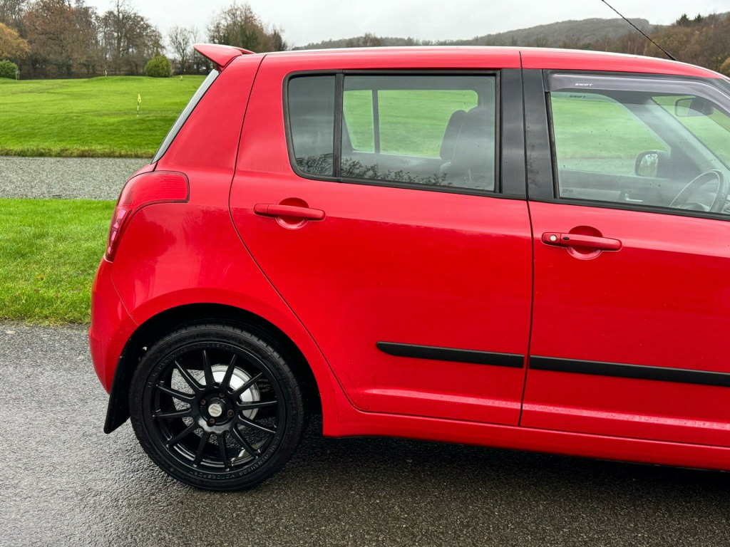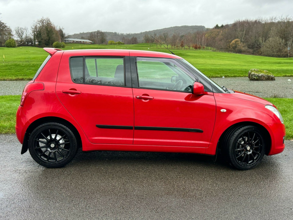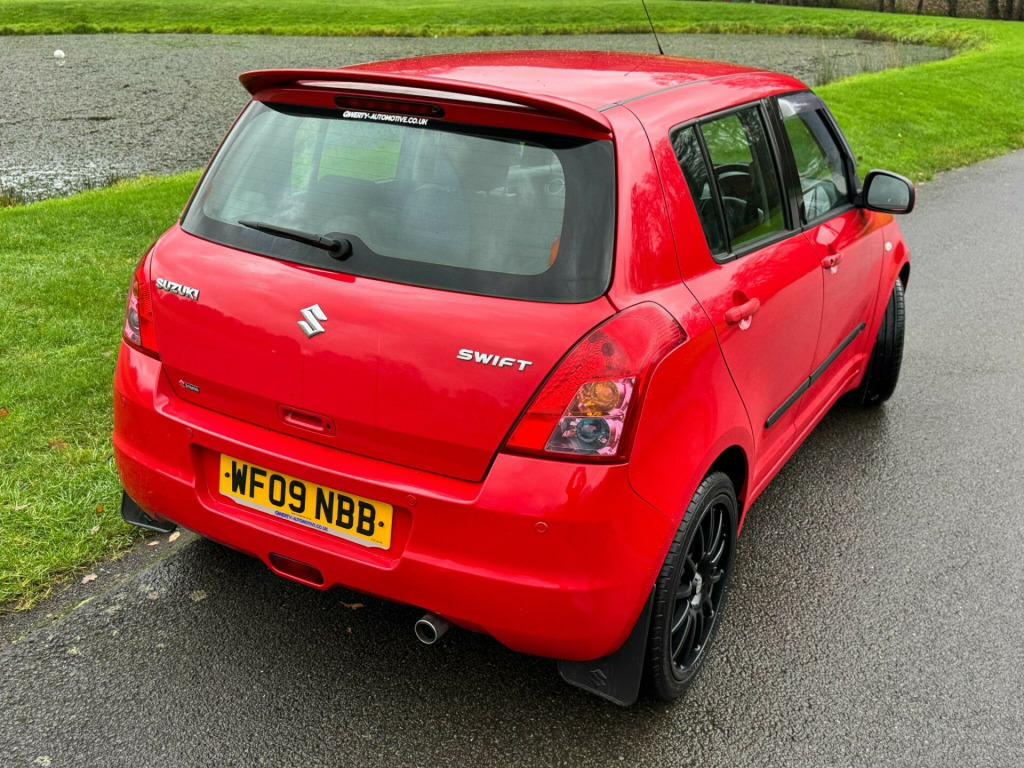 We are pleased to be presenting this 2009 Suzuki Swift 1.5 GLX 5dr, finished in red and showing 70,000 miles. This example has had 2 owners, both from the same family, and was purchased locally from Suzuki Tracks.This Swift has been serviced every year since new, with 11 services stamped in the book up to 2020. From 2020 onwards it moved to its second owner, where we have cared for it since, and it has never had any expense spared. We have receipts for all servicing and maintenance since 2020,which will come with the car.Powered by the reliable 1.5 petrol chain-driven engine, running costs include £215 annual road tax and 45 MPG combined.Being the GLX, this is the top specification, and this example also benefits from factory Suzuki mud flaps, wind deflectors, and keyless starting. Standard equipment includes air conditioning, alloy wheels, electric windows, remote central locking, and front fog lights.As part of our preparation, we have had the alloy wheels professionally refurbished, fitted two new tyres, replaced the front brake discs and pads, and carried out our oil and filter service.This Swift is in superb condition inside and out.As with all our vehicles, this Suzuki has been treated to a multi-stage valet using the best products Auto Glym have to offer. Every car we handle receives, at minimum, a service as part of our pre-sale preparation. Supplied with 12 months MOT without advisory, our complimentary 3-month warranty, 12 months free AA breakdown cover, and 2 keys.Please do not hesitate to get in touch via Text, Call or Email at any time to arrange a viewing and test drive. Viewing available by appointment only. To find out more about us, head to our website at WWW.QWERTY-AUTOMOTIVE.CO.UK. Whilst every effort has been made to ensure the accuracy of the above information, sometimes errors may occur please check with a salesperson. tallic paint