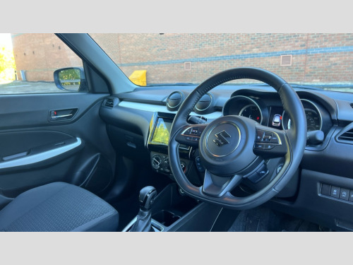 Suzuki Swift 1.2 Dualjet 83 12V Hybrid SZ-T 5dr Auto Adaptive cruise control, Automatic start/stop system, Blind spot monitoring, Colour LCD information display, Fuel consumption screen, Gear position indicator, Lane departure warning system, Lights on warning, Low fuel level warning light, Outside temperature display, PAS, Rear cross traffic alert, Rear parking camera, Rear parking sensors, Remote fuel cap release, Smartphone integration with Apple CarPlay and Android auto, Speed limiter, Tachometer, Tailgate, Traffic sign recognition, Trip computer, Weaving alert, 4 speakers, Auxiliary input socket, Bluetooth audio streaming, DAB Digital radio, Steering wheel audio controls, USB interface, 'Guide me home' headlamps, 2 speed wipers+intermittent wipe, Automatic headlamp levelling, Automatic headlights, Black coloured A & B pillars, Black front grille chrome, Body colour door handles, Body coloured bumpers, Electric door mirrors, Electric front windows, Front fog lights, Green tinted glass, Heated door mirrors, High beam assist, High mounted stop lamp, LED daytime running lights, LED position lamps, LED projector headlamps, LED rear combination lamp, Rear fog lights, Rear privacy glass, Rear wiper, 1 cup holder in rear, 12V Accessory socket in front console, 2 cup holders in front, 2 Isofix seat anchors, 3 spoke leather covered steering wheel, 60/40 split rear seats, Accessory socket, Air conditioning, Centre console storage, Centre lower box, Child seat tether anchorages x 2, Chrome handbrake release button, Chrome interior door handles, Cloth seat trim, CVT shift lock, Door pockets with bottle holder, Driver/passenger sunvisors with ticket holders + vanity mirrors, Front cabin lights, Front head restraints, Front map light, Front passenger side assist grip, Gearshift paddles, Glovebox, Heater, Height adjustable driver's seat, Luggage area lamp, Parcel shelf, Passenger seat back pocket, Pollen filter, Rear headrests, Tilt adjustable steering wheel, 3 point ELR seatbelts for centre seat, 3 point ELR seatbelts front and rear, ABS+EBD+Brake assist, Curtain airbags, Driver airbag, Dual sensor brake support, ESP + traction control, Foot protecting brake and clutch pedals, Front and rear seatbelt reminder, Front passenger airbag deactivation, Front seatbelt pretensioners with force limiters, Height adjustable front seatbelts, Hill hold control, Passenger airbag, Rear child proof door locks, Rear seatbelts with pre-tensioners and load limiters, Side airbags, Side impact protection beams, Tyre pressure indicator, Alarm, Deadlocks, Freewheeling key cylinders, Immobiliser, Light - on and Key in reminder, Locking wheel nuts, Remote central locking, White instrument panel and front door trim, 16" Painted alloy wheels, Tyre repair kit