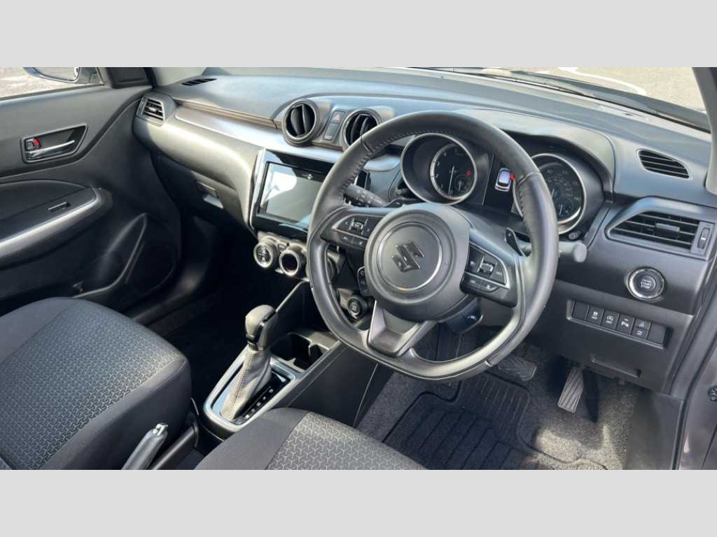 Suzuki Swift 1.2 Dualjet 83 12V Hybrid SZ5 5dr Auto Adaptive cruise control, Automatic start/stop system, Blind spot monitoring, Colour LCD information display, Fuel consumption screen, Gear position indicator, Lane departure warning system, Lights on warning, Low fuel level warning light, Navigation system, Outside temperature display, PAS, Rear cross traffic alert, Rear parking camera, Rear parking sensors, Remote fuel cap release, Smartphone integration with Apple CarPlay and Android auto, Speed limiter, Tachometer, Tailgate, Traffic sign recognition, Trip computer, Weaving alert, 4 speakers + 2 tweeters, Auxiliary input socket, Bluetooth audio streaming, DAB Digital radio, Steering wheel audio controls, USB interface, 'Guide me home' headlamps, 2 speed wipers+intermittent wipe, Automatic headlights, Black coloured A & B pillars, Black front grille chrome, Body colour door handles, Body coloured bumpers, Door mirrors with built-in turn signal lamp, Electric door mirrors, Electric folding door mirrors, Electric front windows, Electric rear windows, Front fog lights, Green tinted glass, Headlamp levelling, Heated door mirrors, High beam assist, High mounted stop lamp, LED daytime running lights, LED number plate light, LED position lamps, LED projector headlamps with DRL, LED rear combination lamp, Rear fog lights, Rear privacy glass, Rear wiper, 12V Accessory socket in front console, 2 Isofix seat anchors, 3 cupholders, 3 spoke leather covered steering wheel, 60/40 split rear seats, Accessory socket, Automatic air conditioning, Centre console storage, Centre lower box, Chrome handbrake release button, Chrome interior door handles, Cloth seat trim, CVT shift lock, Door pockets with bottle holder, Driver/passenger sunvisors with ticket holders + vanity mirrors, Front head restraints, Front map light, Front passenger side assist grip, Gearshift paddles, Glovebox, Heater, Height adjustable driver's seat, Luggage area lamp, Passenger seat back pocket, Pollen filter, Rear assist grips, Rear headrests, Tilt/telescopic adjustable steering wheel, Top tether anchor plate for isofix child seat, 3 point ELR seatbelts for centre seat, 3 point ELR seatbelts front and rear, ABS+EBD+Brake assist, Curtain airbags, Driver airbag, Dual sensor brake support, ESP + traction control, Foot protecting brake and clutch pedals, Front and rear seatbelt reminder, Front passenger airbag deactivation, Front seatbelt pretensioners with force limiters, Height adjustable front seatbelts, Hill hold control, Passenger airbag, Rear child proof door locks, Rear seatbelts with pre-tensioners and load limiters, Side airbags, Side impact protection beams, Tyre pressure indicator, Alarm, Deadlocks, Freewheeling key cylinders, Immobiliser, Keyless entry and start, Light - on and Key in reminder, Locking wheel nuts, Remote central locking, Silver instrument panel and interior door trim, 16" Polished alloy wheels, Tyre repair kit