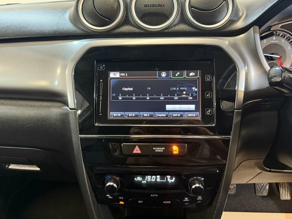 Full service history with services completed at 28, 40, 52, and 71 thousand miles. Supplied with two keys and has had two previous owners. This Suzuki Vitara 1.0 Boosterjet SZ-T SUV offers a reliable and efficient driving experience with its Euro 6 compliant petrol engine and manual transmission. The car is well-equipped with alloy wheels, privacy glass, electric door mirrors, cruise control, a reverse camera, satellite navigation, DAB radio, and climate control. A well-maintained and stylish SUV that provides comfort, practicality, and modern technology for everyday driving. 12V Accessory Socket x2, 17in Alloy Wheels - Painted Finish, 2 x Front Cup Holders, 2 x Front Door and 2 x Rear Door Bottle , 3-Spoke Leather Covered Steering Wheel, ABS with EBD and Brake Assist Function, Automatic Air Conditioning, Black Wheel Arch and Lower Side Trims, Bluetooth Connectivity, Child Seat Tether Anchorages x 3, Childproof Rear Door Locks, Chrome Lower Front Bumper Trim, Cruise Control with Speed Limiter, Curtain Airbags, DAB Digital Radio, Daytime Running Lights - LED, Deadlocks, Driver Knee Airbag, Driver and Front Passenger Airbags, Driver and Front Passenger Seat Height A, ESP - Electronic Stability Program, Electric Front and Rear Windows, Electrically Adjustable and He