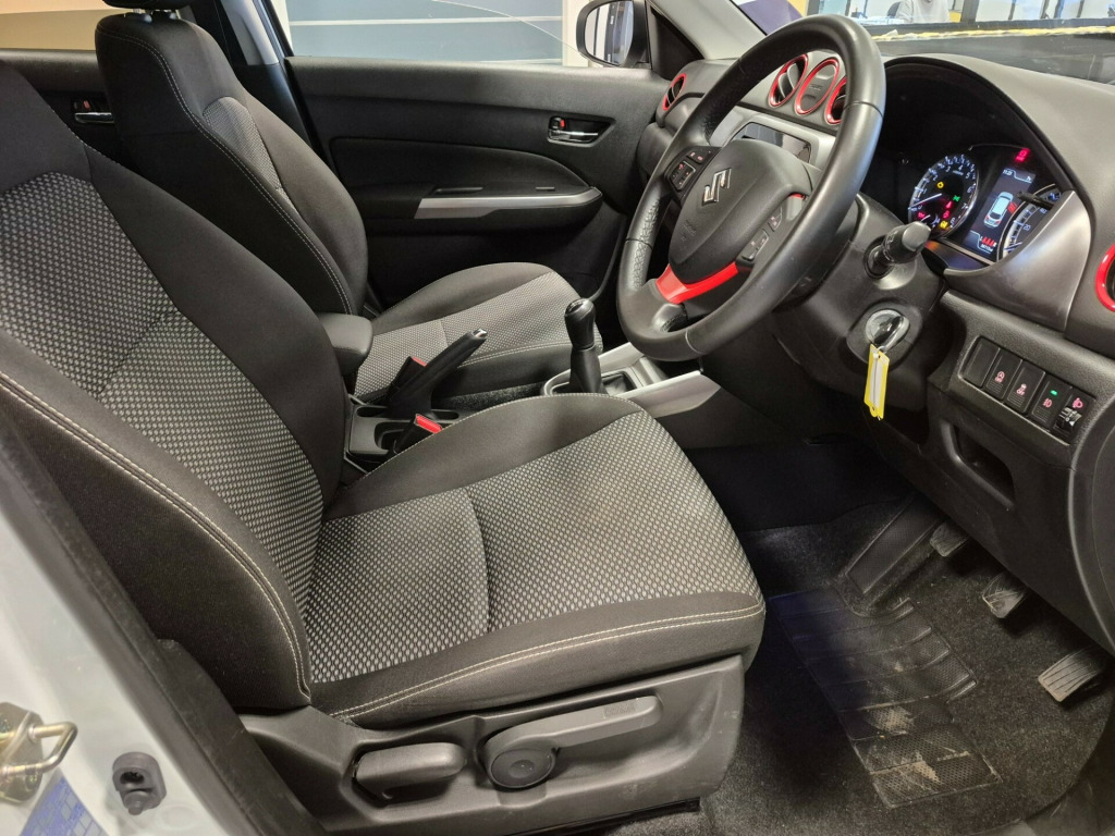 This 2019 Suzuki Vitara 1.0 Boosterjet SZ-T SUV, with 56713 miles on the clock, is a reliable and fuel-efficient choice for those in search of a spacious and practical vehicle. Running on Petrol and equipped with a manual transmission, it offers a smooth and enjoyable driving experience, while also being ULEZ compliant, making it suitable for city driving. With MOT valid until 13/12/2025, this 5-door SUV provides ample space for 5 passengers, ensuring a comfortable journey for all. The vehicle boasts modern features such as Bluetooth connectivity, DAB digital radio, navigation system, and LCD colour information display, as well as 12V accessory sockets for added convenience. With its practicality and efficiency, this Suzuki Vitara is an excellent option for those in need of a versatile and capable SUV. v accessory socket x2, bluetooth connectivity, dab digital radio, lcd colour information display, navigation system, smartphone linkage display audio, speakers x4, usb connector, 17in alloy wheels - painted finish, black wheel arch and lower side trims, chrome lower front bumper trim, electric front and rear windows, electrically adjustable and heated door mirrors, emergency flat tyre repair kit, front grille - chrome, locking wheel bolts, rear privacy glass, roof rails - silver, 2 x front cup holders, 2 x front door and 2 x rear door bottle holders, 3-spoke leather covered steering wheel, automatic air conditioning, driver and front passenger seat height adjuster, front centre armrest, front footwell and centre lower console box lights, front map light, front sunvisor with vanity mirror and illumination, glovebox light, luggage area cover, luggage area light, rear seat with 60-40 split folding, removable double luggage room floor, steering wheel mounted audio controls, sunvisor ticket holder, tilt and telescopic adjustable steering wheel, abs with ebd and brake assist function, child seat tether anchorages x 3, childproof rear door locks, curtain airbags, deadlocks, driver knee airbag, driver and front passenger airbags, esp - electronic stability program, freewheeling key cylinders, front 3-point elr seatbelts with pretensioner-force limiter and height adjuster, front passenger airbag deactivation system, hill hold control, isofix child seat anchorages x 2, immobiliser, rear 3-point elr seatbelts x 3, remote central door locking, security alarm, side airbags, side impact protection beams, visible vin, cruise control with speed limiter, power steering, rear parking camera, tpms - tyre pressure monitoring system, daytime running lights - led, front fog lights, halogen projector headlamps, led rear combination lights