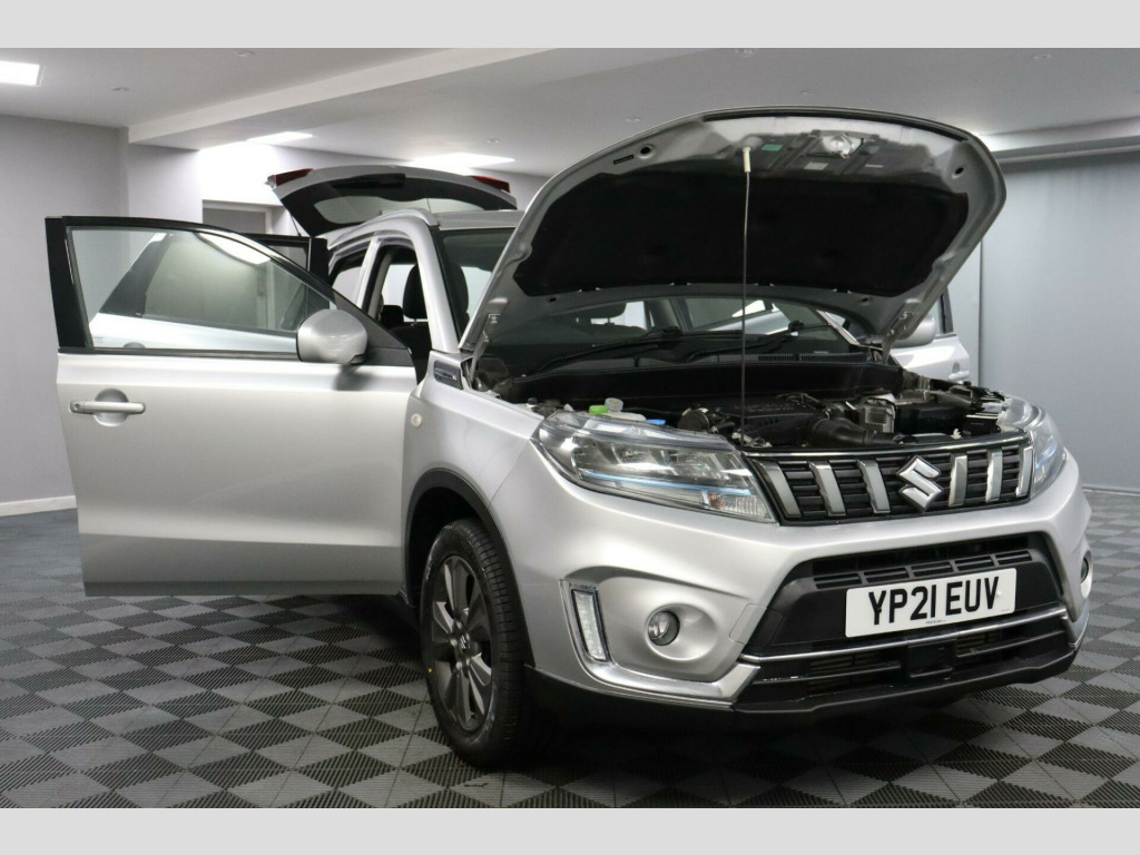 YP21EUV. Suzuki has been building the Vitara since 1988, long before compact sport utility vehicles became part of everyday driving. That experience shows in how the Suzuki Vitara 1.4 Boosterjet mild hybrid SZ T fits into modern life. This low mileage example offers better fuel economy and works well for commuting, family use, and longer trips.At the centre of the dash sits the 7 inch Colour Touchscreen Infotainment System, bringing together the Navigation System, DAB Radio, Bluetooth, and Apple CarPlay and Android Auto, keeping calls, music, and directions easy to reach. Steering Wheel Mounted Audio Controls keep key functions close to hand, with a USB connector and 12 volt accessory socket for charging.Adaptive Cruise Control with Speed Limiter supports longer journeys, while Lane Departure Warning and Lane Departure Prevention add extra awareness on the road. Blind Spot Monitor helps when changing lanes, and the Rear Parking Camera makes parking more straightforward. Hill Hold Control supports pulling away on slopes, with the Engine Auto Stop Start System working quietly in traffic.Automatic Air Conditioning keeps the cabin comfortable, with Anti Lock Braking, Electronic Brakeforce Distribution, and Brake Assist supporting controlled driving.Book a test drive.This car has just been serviced and comes with a Good Service History (2 records), a new 12-month MOT with no advisories, a clear HPI report and verified mileage for peace of mind. Finance is available, and we can provide a personalised video on request. Please note that some features (e.g., Navigation/CarPlay) may require an active subscription. Spec details can vary, so just ask if you’d like us to confirm anything. For more info or a finance quote, call ☎️ 0113 257 00 00.. Navigation System, Adaptive Cruise Control and Speed Limiter, Apple CarPlay - Android Auto, Hill Hold Control, DAB Digital Radio, Lane Departure Prevention, Electrically Adjustable and Heated Door Mirrors, Freewheeling Key Cylinders, ISOFIX Child Seat Anchorages x 2, 17in Alloy Wheels - Painted Finish, Engine Auto Stop Start System, Automatic Air Conditioning, Blind Spot Monitor, Lane Departure Warning, Rear Parking Camera, Steering Wheel Mounted Audio Controls, USB Connector, ABS with EBD and Brake Assist Function, 7in Colour Touchscreen Infotainment System, Bluetooth Integrated into Audio Unit, 12V Accessory Socket - Centre Lower Box, Fabric - Grey with White Stitching.