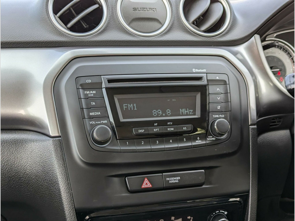 Experience the dynamic performance of the Suzuki Vitara 1. 4 Boosterjet MHEV SZ4, a petrol hybrid SUV that combines efficiency with an engaging driving experience. This Euro 6 compliant model offers a smooth manual transmission and is equipped with advanced features like Adaptive Cruise Control and Dual Sensor Brake Support for enhanced safety and comfort. The hybrid technology ensures excellent fuel efficiency, making it an ideal choice for those seeking a reliable yet economical vehicle. The Vitara's styling is both modern and sophisticated, with a striking blue exterior that complements its body-coloured door handles and mirrors. The 16-inch alloy wheels and chrome front grille further enhance its visual appeal. Inside, you'll find a thoughtfully designed cabin, featuring a 3-spoke leather-covered steering wheel and chrome interior accents that add a touch of elegance to your driving experience. This Suzuki Vitara comes with an impressive array of options, including automatic air conditioning and rain-sensing wipers for convenience in all weather conditions. The audio system, with Bluetooth integration, DAB digital radio, and a CD player, ensures you stay connected and entertained on the move. Safety features like the Blind Spot Monitor and Lane Departure Warning provide added peace of mind, while the LED projector headlamps and daytime running lights ensure excellent visibility. With practical additions such as a removable double luggage room floor and multiple accessory sockets, this SUV is well-equipped to meet all your driving needs.