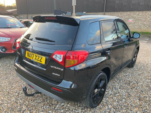 SATELLITE NAVIGATION SYSTEM+DAB DIGITAL RADIO+BLUETOOTH+AUTOMATIC AIR-CONDITIONING+HALF LEATHER UPHOLSTERY+AUTOMATIC HEADLIGHT ACTIVATION+RAIN-SENSING WINDSCREEN WIPERS+FRONT & REAR PARKING ASSISTANCE+TOWBAR+'COSMIC BLACK PEARL' PAINT+17 INCH ALLOY WHEELS. At Haverhill Car Xchange we would like to offer you our Suzuki Vitara S SUV which has been finished in a 'Cosmic Black Pearl' paint with Black half leather and suede upholstery. Specification Includes Satellite Navigation, DAB Digital Radio, Bluetooth, USB Connector, 12 Volt Accessory Socket in Front and Rear, Automatic Air-Conditioning, Adaptive Cruise Control, Electric Front and Rear Windows, Body Coloured Bumpers with Chrome Front Grille, Body Coloured Door Handles/Rear Roof Spoiler, Satin Silver Door Mirrors with Integrated Side Indicators, Front and Rear Silver Skid Plates, Automatic Headlight Activation, LED Daytime Running Lights, Front Fog Lights, Rain-Sensing Windscreen Wipers, Front and Rear Parking Assistance, Multifunction Steering Wheel, Rear Privacy Glass, 17 Inch Alloy Wheels, Keyless Entry/Start, Towbar, Power Steering, Hill Hold Control, ABS Breaking System, Airbags, Alarm, Immobiliser, Remote Central Locking and ISOFIX Anchorage Points for Child Seats. Suede - Black, Cosmic Black Pearl, 12V Accessory Socket - Centre Lower Box, 12V Accessory Socket - Luggage Area, 17in Alloy Wheels - Black Gloss, 2 x Front Cup Holders, 2 x Front Door and 2 x Rear Door Bottle , 3-Spoke Leather Covered Steering Wheel, ABS with EBD and Brake Assist Function, Adaptive Cruise Control, Aluminium Pedals, Analogue Clock, Automatic Air Conditioning, Automatic Headlamp Levelling, Automatic Headlamps, Bluetooth Integrated into Audio Unit, Body Coloured Exterior Door Handles, Centre-Lower Box, Child Seat Tether Anchorages x 3, Childproof Rear Door Locks, Chrome Interior Door Handles, Curtain Airbags, DAB Digital Radio, Daytime Running Lights - LED, Deadlocks, Driver Kn