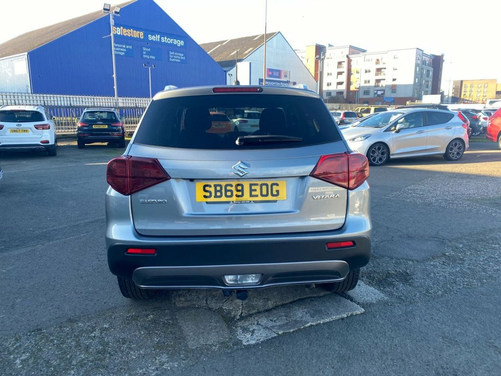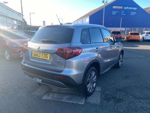 PROS Good value for money Punchy Boosterjet engine Optional four-wheel drive The Suzuki Vitara has been around for decades now, but over the years it's morphed from a rough-and-ready miniature 4×4 into a softer-edged family SUV. It still retains much of the same character as its predecessors, though, maintaining Suzuki's trademark lightweight construction and range of clever touches that both distance it from the rest of its class and lend it a bit of desirability. 12V Accessory Socket x2, 17in Alloy Wheels - Painted Finish, 2 x Front Cup Holders, 2 x Front Door and 2 x Rear Door Bottle , 3-Spoke Leather Covered Steering Wheel, ABS with EBD and Brake Assist Function, Automatic Air Conditioning, Black Wheel Arch and Lower Side Trims, Bluetooth Connectivity, Child Seat Tether Anchorages x 3, Childproof Rear Door Locks, Chrome Lower Front Bumper Trim, Cruise Control with Speed Limiter, Curtain Airbags, DAB Digital Radio, Daytime Running Lights - LED, Deadlocks, Driver and Front Passenger Airbags, Driver and Front Passenger Seat Height A, Driver Knee Airbag, Electric Front and Rear Windows, Electrically Adjustable and Heated Door , Emergency Flat Tyre Repa