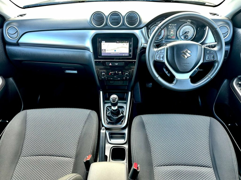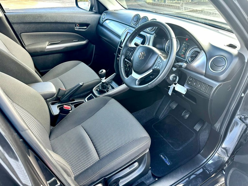 This superb Suzuki Vitara SZ-T finished in Cosmic Black metallic has the popular Technology pack fitted giving you a very handy reversing camera, touch screen Satellite Navigation, Bluetooth and media connectivity for your smartphone devices. Robustly built and superbly reliable, it benefits from a huge boot and a raised driving position allowing ease of access to and from the vehicle. The 1.4 BoosterJet engine produces 128 bhp and its aided by a mild hybrid battery meaning the fuel economy is superb in its class. Previously sold by us a few years ago it's had just two previous owners and comes with new tyres, a full service history - the last full service performed by Donnelly Suzuki less than 100 miles ago! Supplied with a full fresh 12 months MOT and Suzuki warranty until December 2026, this really is terrific value for money! Cosmic Black Pearl, 12V Accessory Socket - Centre Lower Box, 12V Accessory Socket - Luggage Area, 4.2in Colour LCD Display, Automatic Headlamp Levelling, Automatic Headlamps, Bluetooth Integrated into Audio Unit, DAB Digital Radio, Daytime Running Lights - LED, Engine Auto Stop Start System, Front Fog Lights, High Mounted Stop Lamp, LED Multi-Reflector Headlamps - Low and , LED Rear Combination Lights, Lights-On and Key-In Reminder, Navigation System, Power Steering, Smartphone Linkage Display Audio, Speakers x4, Speed Limiter, USB Connector, 17in Alloy Wheels - Painted Finish, Body Coloured Exterior Door Handles, Body Coloured Exterior Door Mirrors, Chrome Lower Front Bumper Trim, Electric