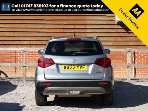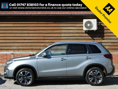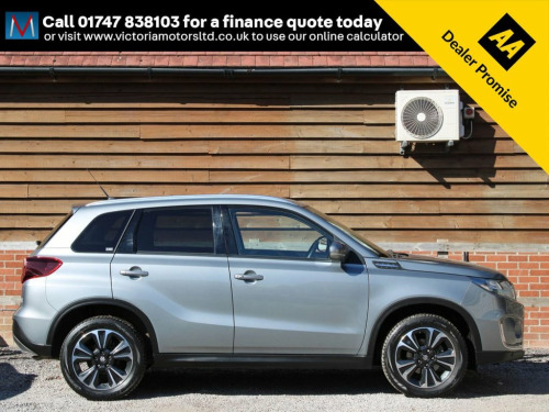 ***FOR VIEWINGS AND TEST DRIVES CALL US ON 01747 838103 TO BOOK AN APPOINTMENT***Great looking top of the range automatic Vitara fitted with Suzuki's 1.5 petrol hybrid ULEZ compliant engine with great power and economy finished in grey metallic with equipment including full leather and suede trim with heated functions, electric seats, tilt and slide opening panoramic roof with blind, media unit with satellite navigation, parking sensors and parking camera, apple carplay meaning you can mirror the apps from your phone onto the screen of your car such as Google maps and Spotify, bluetooth, auto air conditioning, auto lights, media connections, electric folding wing mirrors, cruise control, diamond cut alloy wheels, 33900 miles, service history, high up driving position with easy access in and out of the cockpit***PART EXCHANGE AVAILABLE***USE THE FINANCE CALCULATOR ON OUR WEBSITE www.victoriamotorsltd.co.uk AND QUOTE YOURSELF A MONTHLY PAYMENT FIGURE TODAY WITH ZERO DEPOSITS AVAILABLE*** 12V Accessory Socket - Centre Lower Box, 12V Accessory Socket - Luggage Area, 17in Alloy Wheels - Polished Finish, 2 x Front Cup Holders, 2 x Front Door and 2 x Rear Door Bottle , 3-Spoke Leather Covered Steering Wheel, 4.2in Colour LCD Display, ABS with EBD and Brake Assist Function, Adaptive Cruise Control, Automatic Air Conditioning, Automatic Headlamp Levelling, Automatic Headlamps, Automatic Wiper, Blind Spot Monitor, Bluetooth Integrated into Audio Unit, Body Coloured Exterior Door Handles, Body Coloured Exterior Door Mirrors, Centre Analogue Clock, Centre Cabin Light, Child Seat Tether Anchorages x 3, Childproof Rear Door Locks, Chrome Dashboard Trim Ring Set, Chrome Hand Brake Releas