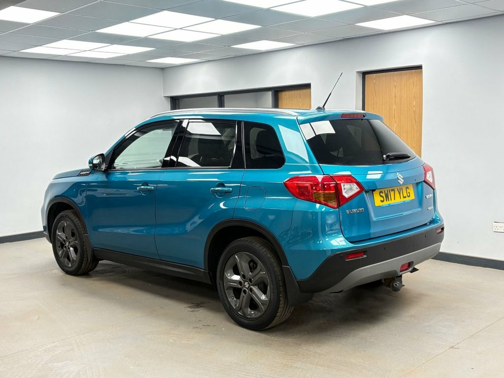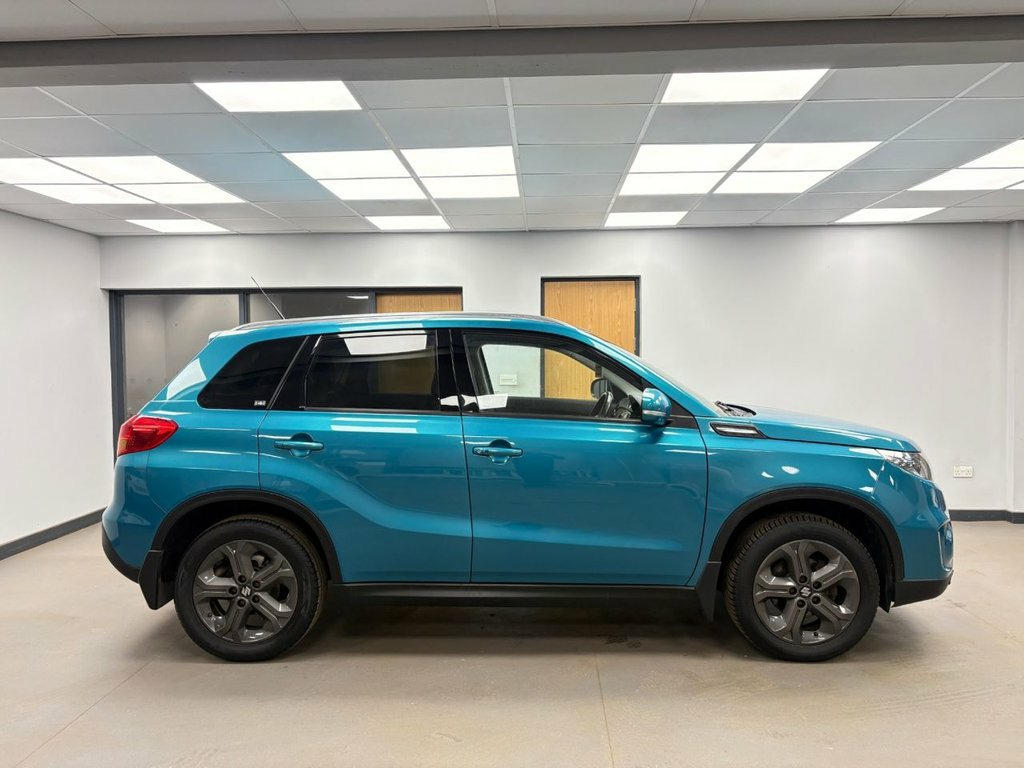 This 2017 Suzuki Vitara DDiS SZ5. This Four Wheel Drive model is equipped with a 1.6 litre diesel engine and meets Euro 6 emissions standards. Inside, you will find Automatic Air Conditioning with Climate Control, and Bluetooth integrated into the audio unit for seamless connectivity. Parking is made easier with front and rear parking distance sensors, and the convenience of automatic headlamps ensures visibility is always optimal. For effortless journeys, this Vitara also features Adaptive Cruise Control. The Suzuki Vitara DDiS SZ5 stands out with its impressive fuel economy, achieving a remarkable 67 miles per gallon, which indicates it is more economical than many similar vehicles. Furthermore, its low insurance group and low CO2 emissions highlight its cost effectiveness and environmental consideration compared to other cars in its class. 12V Accessory Socket - Centre Lower Box, 12V Accessory Socket - Luggage Area, 17in Alloy Wheels - Polished Finish, 2 x Front Cup Holders, 2 x Front Door and 2 x Rear Door Bottle , 3-Spoke Leather Covered Steering Wheel, ABS with Brake Assist Function, Adaptive Cruise Control, Analogue Clock, Atlantis Turquoise Pearl, Automatic Air Conditioning, Automatic Headlamp Levelling, Automatic Headlamps, Bluetooth Integrated into Audio Unit, Body Coloured Exterior Mirrors and Door , Centre-Lower Box, Child Seat Tether Anchorages x 3, Childproof Rear Door Locks, Chrome Interior Door Handles, Curtain Airbags, DAB Digital Radio, Daytime Running Lights - LED, Deadlocks, Double Sliding Panoramic Sunroof, D