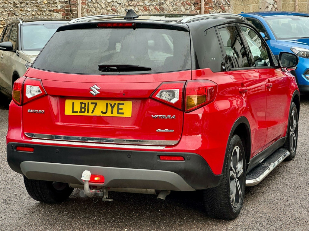 |||| THE USED CAR: |||| Pavillion Car Sales is pleased to offer an excellent example of a Suzuki Vitara in the SZ5 TCSS Trim!This sleek red hatchback is well equipped with lots of great features including Apple Car Play, Reverse Camera, Bluetooth, Side Step, DAB Radio, Cruise Control, Auto Climate Control, 17-Inch Alloys, Privacy Glass, Keyless Start & Entry, Navigation, Towbar, Sunroof, 4 WD Drive Select, and more. The 1.6 Diesel engine delivers an impressive 67.2 MPG, boasting 118 horsepower. With as little as £195 annual road tax and ULEZ (EURO 6) compliance, this practical and economical choice invites you for a test drive. |||| THE HISTORY: |||| Well Maintained Having only 1 FORMER KEEPER, this used car has been well maintained inside and out. A thorough mechanical inspection has been carried out and Part service history is provided. ( 7 Total Services) 1st at(4388) 2nd at(7416) 3rd at(20034) 4th at(33290) 5th at(59517) 6th at(59653) 7th at(67901).|||| WHAT'S INCLUDED: |||| Benefits & Peace of MindExperience peace of mind with a Long MOT Till 14/10/2026, 12 months complimentary AA breakdown cover, and a 3-month warranty extendable to a nationwide 36 months with the AA. 5-day Drive away cover is available, and we can assist with road tax. 2 KEYS.|||| ABOUT US: |||| The Family Run & Award-Winning Used Car DealershipWelcome to Pavillion Car Sales – a multi-award-winning, family-run car dealership with over a decade of expertise we have used cars for sale in Brighton & Crawley. As an AA-authorized & Trading Standards-approved used car dealership, we're committed to offering high-quality second-hand vehicles for sale at competitive prices. Each car undergoes a meticulous selection process to meet our high standards, finding you a perfect balance between quality, reliability, and value. Beyond our extensive selection of used cars for sale, our services ensure a seamless and stress-free experience, including a thorough multi-point inspection, history checks, a pressure-free family-like environment. Ready to go.PAVILION CAR SALES - Brighton. 12V Accessory Socket - Centre Lower Box, 12V Accessory Socket - Luggage Area, 17in Alloy Wheels - Polished Finish, 2 x Front Cup Holders, 2 x Front Door and 2 x Rear Door Bottle Holders, 3-Spoke Leather Covered Steering Wheel, ABS with Brake Assist Function, Adaptive Cruise Control, Analogue Clock, Automatic Air Conditioning, Automatic Headlamp Levelling, Automatic Headlamps, Bluetooth Integrated into Audio Unit, Body Coloured Exterior Mirrors and Door Handles, Centre-Lower Box, Child Seat Tether Anchorages x 3, Childproof Rear Door Locks, Chrome Interior Door Handles, Curtain Airbags, DAB Digital Radio, Daytime Running Lights - LED, Deadlocks, Double Sliding Panoramic Sunroof, Driver Knee Airbag, Driver and Front Passenger Airbags, Driver and Front Passenger Seat Height Adjuster, ESP - Electronic Stability Program, Electric Front and Rear Windows, Electrically Folding Door Mirrors, Emergency Flat Tyre Repair Kit, Emergency Stop Signal, Freewheeling Key Cylinders, Front 3-Point ELR Seatbelts with Pretensioner-Force Limiter and Height Adjuster, Front Fog Lights, Front Footwell and Centre Lower Console Box Lights, Front Map Light - Centre Cabin and Glovebox Lights, Front Passenger Airbag Deactivation System, Front Passenger Seatback Pocket, Front Seatbelt Reminder - Warning Light and Alarm, Front Sunvisors with Vanity Mirrors and Ticket Holder, Front Vanity Mirror Illumination, Front and Rear Parking Distance Sensors, Front and Rear Skid Plates - Silver, Gear Shift Paddles, Hill Descent Control, Hill Hold Control, ISOFIX Child Seat Anchorages x 2, Immobiliser, Information Display, Instrument Panel Colour - Chequer Pattern, Keyless Entry and Start, LED Projector Headlamps, Lights-On and Key-In Reminder, Locking Wheel Bolts, Luggage Area Cover, Luggage Area Light, Luggage Area Shopping Bag Hook and Tie-down Hook x2, Navigation System, Passengers Side and 2 x Rear Assist Grips, Pollen Filter, Power Steering, Radar Brake Support, Rain Sensing Front Wipers, Rear 3-Point ELR Seatbelts x 3, Rear Parking Camera, Rear Privacy Glass, Rear Seat with 60-40 Split Folding, Rear Seatbelt Reminder, Rear Wiper with Intermittent, Removable Double Luggage Room Floor, Roof Rails - Silver, Security Alarm, Side Airbags, Side Impact Protection Beams, Smartphone Linkage Display Audio, Speakers x4, Steering Wheel Mounted Audio Controls, TPMS - Tyre Pressure Monitoring System, Tachometer, Tilt and Telescopic Adjustable Steering Wheel, Traction Control, Tweeters x2, USB Connector, Visible VIN, Wheel Arch Extensions, Suede - Black.