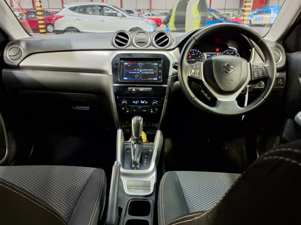 This 2018 Suzuki Vitara SZ-T offers an excellent blend of style and practicality, making it a smart choice for any driver. Powered by an efficient 1.6 litre petrol engine, this Euro 6 compliant model is designed to be kind to your wallet and the environment. Inside, you'll find a user friendly audio unit with integrated Bluetooth for seamless phone connectivity and music streaming. Parking is made simpler with the helpful rear parking camera, and you can maintain a comfortable cabin temperature all year round thanks to the automatic air conditioning.The Suzuki Vitara SZ-T stands out with its impressive fuel economy, achieving a remarkable 53 miles per gallon, which indicates it is more economical than many other vehicles in its class. Furthermore, its low insurance group rating suggests that running costs will be kept to a minimum, and its low CO2 emissions highlight its environmental credentials, positioning it as a more responsible option compared to similar cars. v accessory socket - centre lower box, 12v accessory socket - luggage area, 17in alloy wheels - dark silver finish, 2 x front cup holders, 2 x front door and 2 x rear door bottle holders, 3-spoke leather covered steering wheel, abs with brake assist function, automatic air conditioning, bluetooth integrated into audio unit, body coloured exterior mirrors and door handles, centre-lower box, child seat tether anchorages x 3, childproof rear door locks, chrome interior door handles, cruise control with speed limiter, curtain airbags, dab digital radio, daytime running lights - led, deadlocks, driver knee airbag, driver and front passenger airbags, driver and front passenger seat height adjuster, esp - electronic stability program, electric front and rear windows, electrically adjustable and heated door mirrors, emergency flat tyre repair kit, freewheeling key cylinders, front 3-point elr seatbelts with pretensioner-force limiter and height adjuster, front fog lights, front footwell and centre lower console box lights, front map light - centre cabin and glovebox lights, front passenger airbag deactivation system, front passenger seatback pocket, front seatbelt reminder - warning light and alarm, front sunvisors with vanity mirrors and ticket holder, front vanity mirror illumination, front wiper with adjustable intermittent, front and rear skid plates - silver, halogen projector headlamps, headlamp levelling switch, hill hold control, isofix child seat anchorages x 2, immobiliser, information display, instrument panel colour - silver, lights-on and key-in reminder, locking wheel bolts, luggage area cover, luggage area light, luggage area shopping bag hook and tie-down hook x2, navigation system, passengers side and 2 x rear assist grips, pollen filter, power steering, rear 3-point elr seatbelts x 3, rear parking camera, rear privacy glass, rear seat with 60-40 split folding, rear seatbelt reminder, rear wiper with intermittent, remote central door locking, removable double luggage room floor, roof rails - silver, security alarm, side airbags, side impact protection beams, smartphone linkage display audio, speakers x4, steering wheel mounted audio controls, tpms - tyre pressure monitoring system, tachometer, tilt and telescopic adjustable steering wheel, traction control, usb connector, visible vin, wheel arch extensions