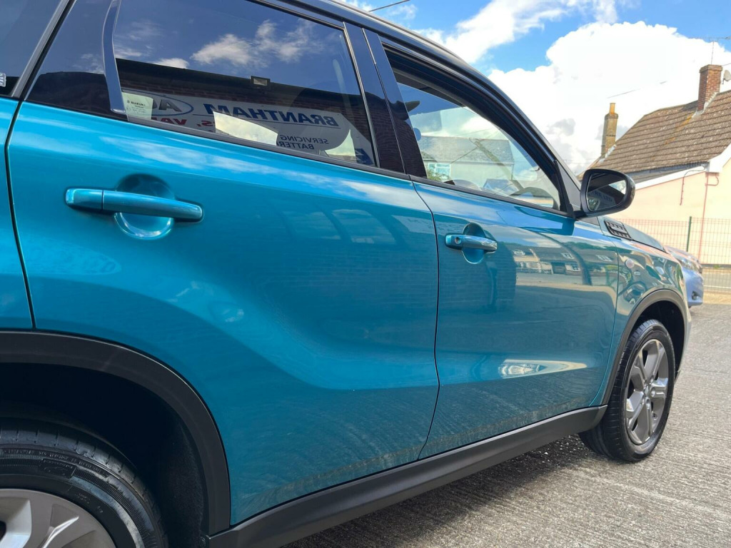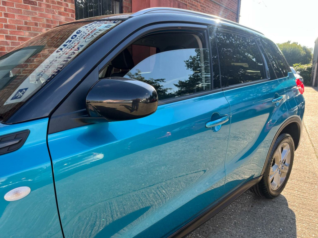 Podium Cars are proud to offer this outstanding Suzuki Vitara. Low Mileage supported by a Full Suzuki Dealership Service History. Last Serviced in April 2025 at 59k miles. The MOT expires in August 2026, passed with No Advisories. ULEZ Compliant. Stunning looking car in Metallic Turquoise with a Black Roof and Door Mirrors. High Spec includes Satellite Navigation, Reverse Camera, Rear Privacy Glass, Alloy Wheels, Cold Air Conditioning, Cruise Control, Bluetooth Connectivity, Roof Rails, Electric Windows, Remote Central Locking, 2 x Suzuki Keys, Original Handbooks, plus more. Excellent condition throughout and a lovely car to drive. One of the very best examples available. This car is Hpi Clear. All of our cars are supplied with a 6 Month Bluechip Premium Warranty for your peace of mind. Extended Warranties are available at very competitive prices. A deposit to secure this car can be paid by Debit Card. The balance payment is required by Bank Transfer. We do not accept Credit Cards. Please read our Customer Reviews, we are very proud of our reputation. We are a self financed family business with a passion for Product Quality, Customer Service and Satisfaction. We have operated from our current Brantham location since June 2014. All Part Exchanges are considered, please talk to us before you sell your vehicle elsewhere. Please call us on 07875 599213 before travelling to us to ensure this vehicle is still available, and that we are able to give you the time and attention that you deserve.
